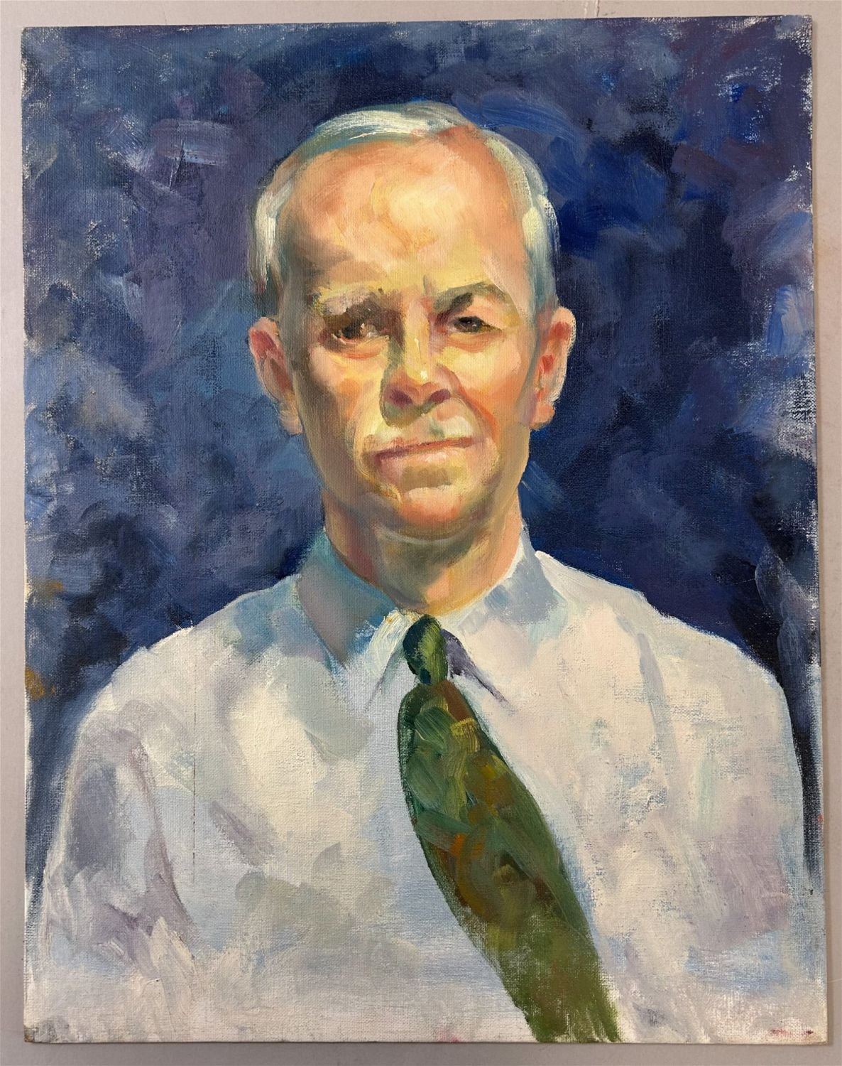 Oil on Canvas Board Man Portrait, sight size 18”h x 14”w Condition: Good