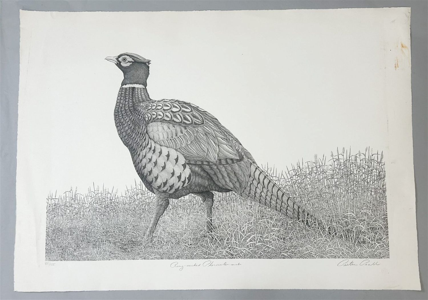 Art Print, Pencil Signed by Pieter Prall at Lower Right and Titled as ”Ring-Necked Pheasant Male”, sight size 24”h x 34”w