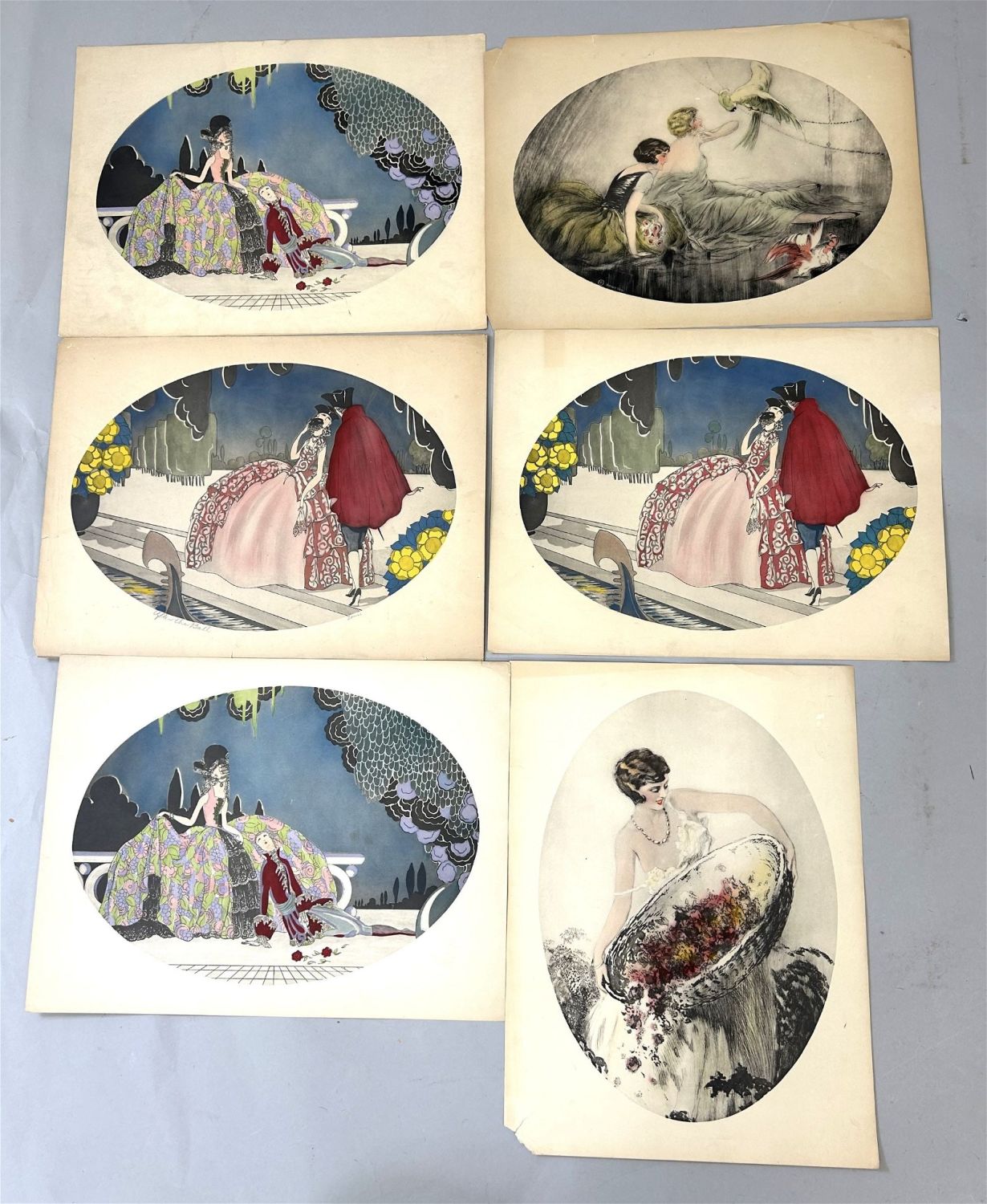 Group of (6) Art Deco Louis Icart Style Prints, sight size 12”h x 16”w Condition: Good