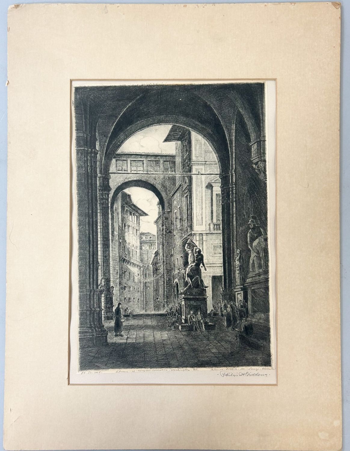 Vintage Woodblock Print, sight size 21”h x 15.5”w