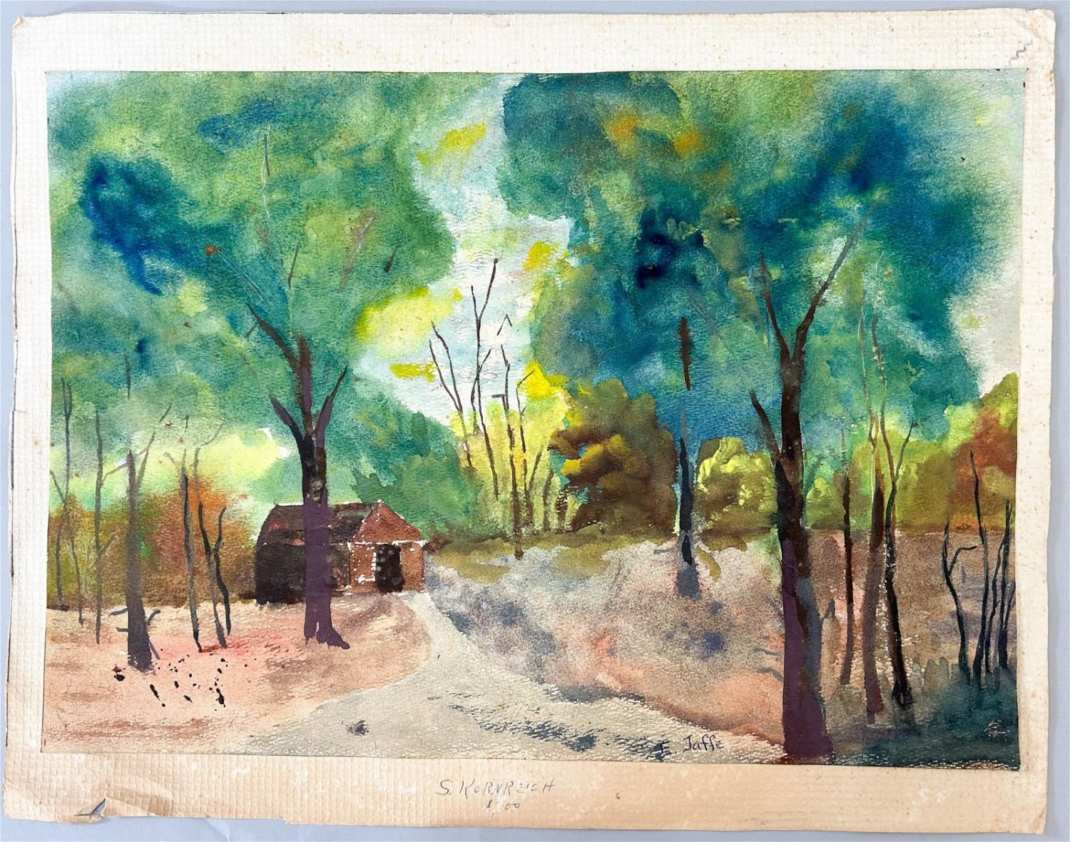 Watercolor Farmscape Painting on Paper by E. Jaffe