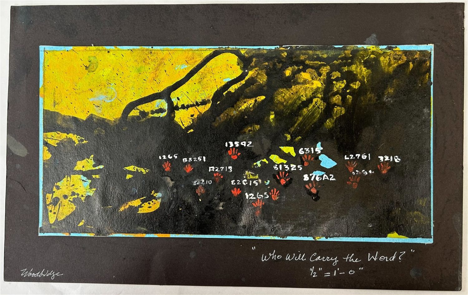 Contemporary Art Print, Titled as ”Woodbridge” with a Note”Who Will Carry the Word”, sight size 8.5”h x 14”w
