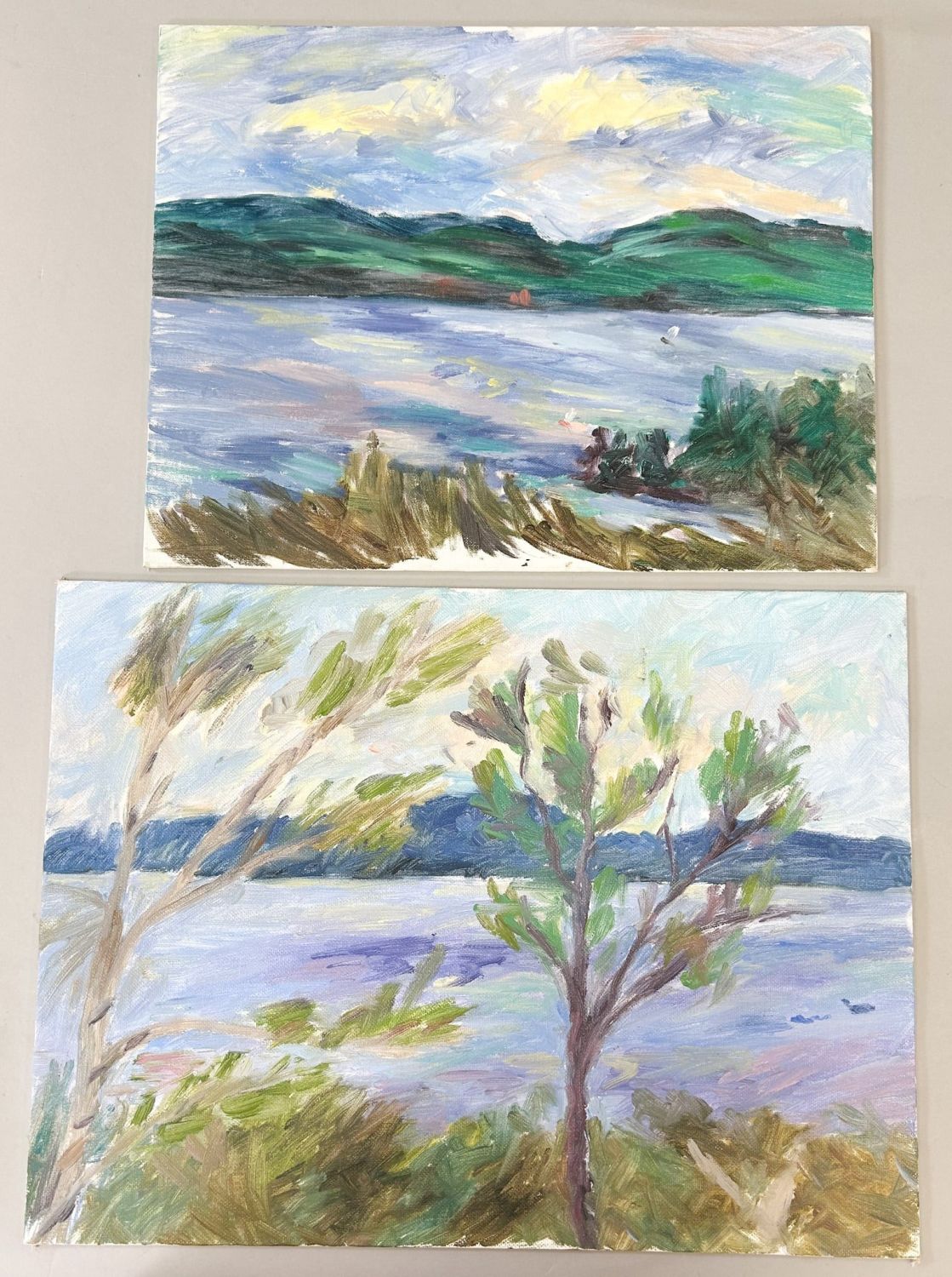 Group of (2) Oil on Canvas Landscape Paintings, Unsigned, largest size 11.75”h x 16”w and smallest size 10.5”h x 13.5”w Condition: Good