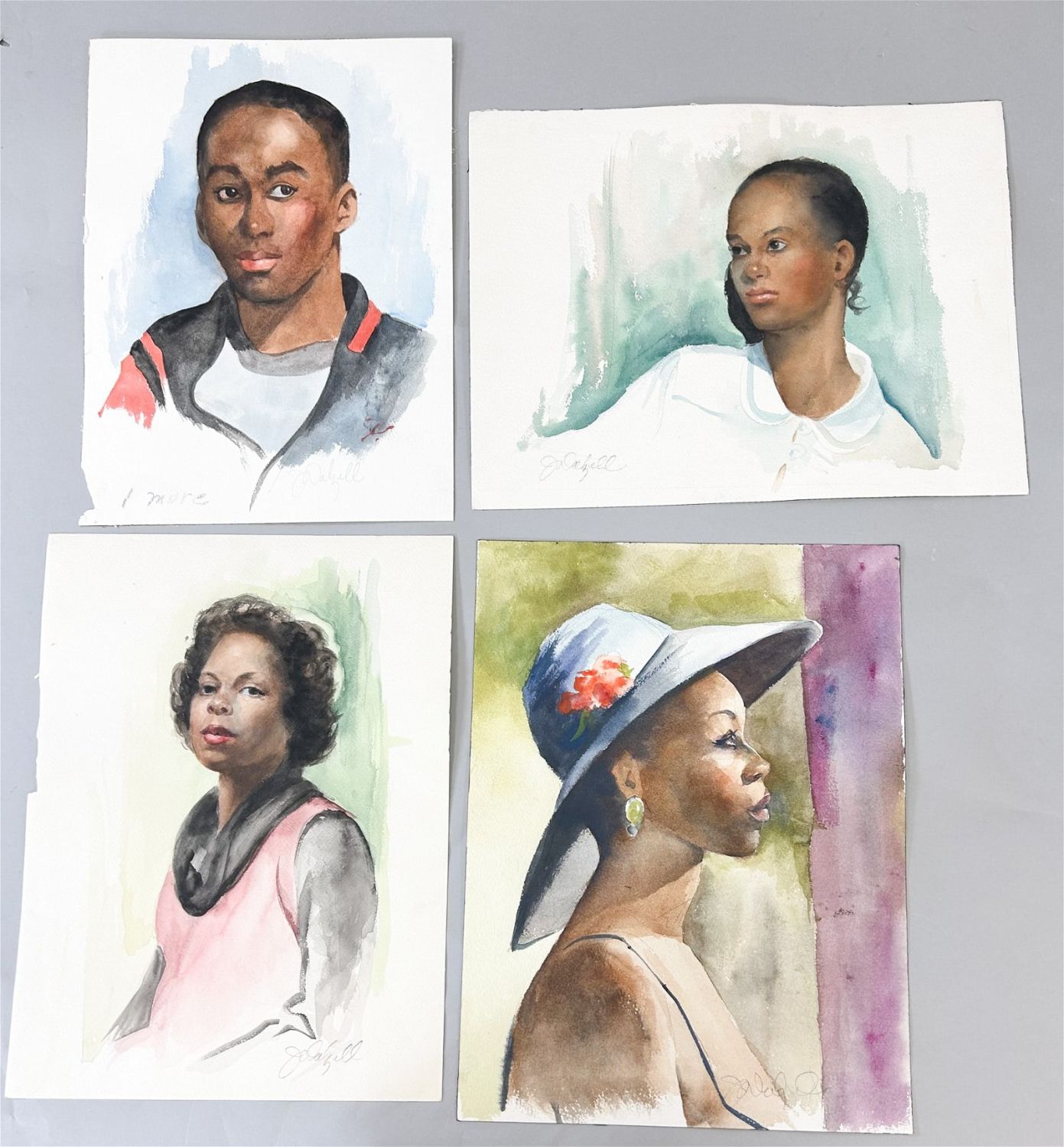 Group of (4) Watercolor on Paper People Portraits by Jessica Dallzell