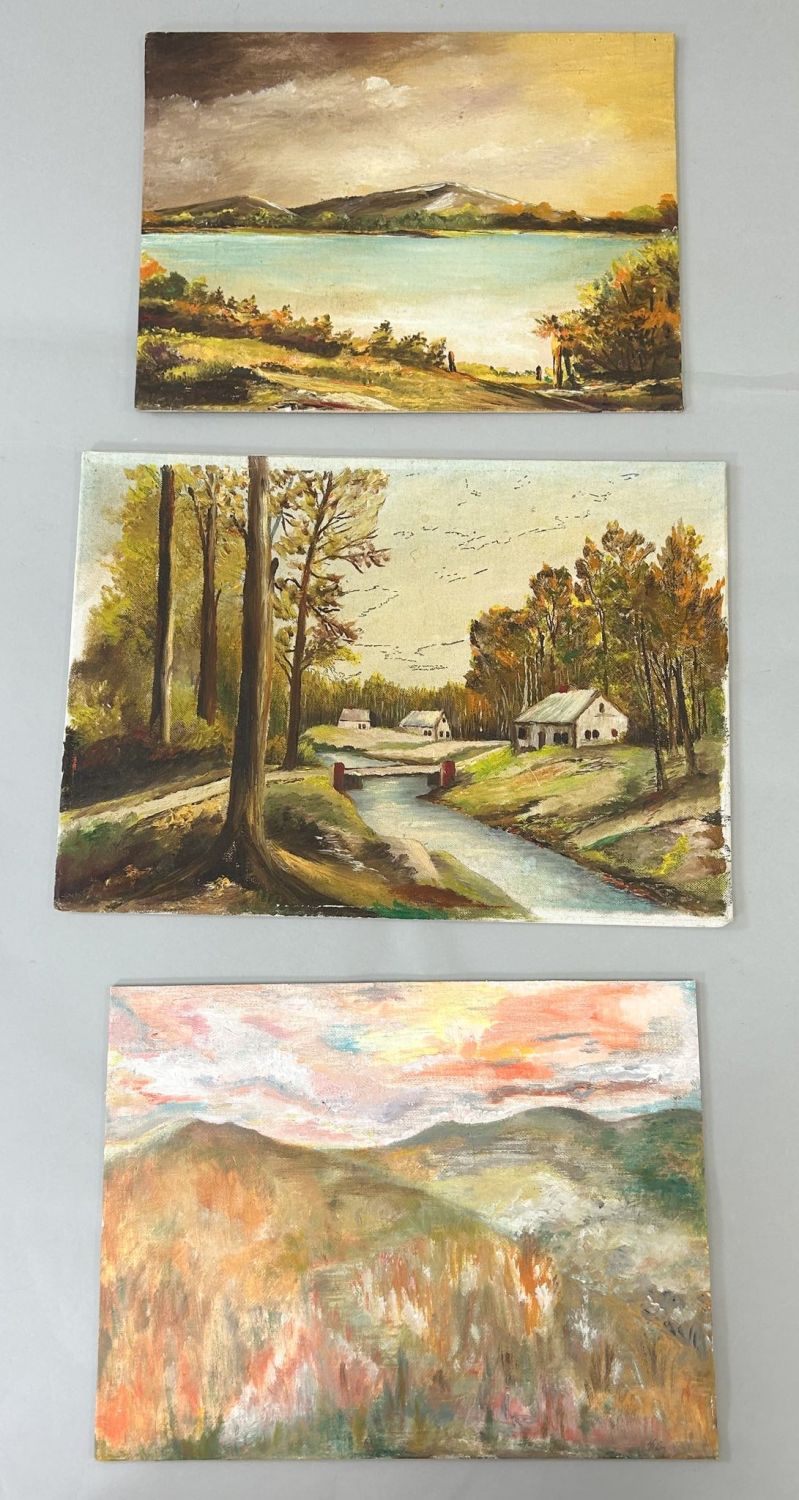Group of (3) Oil on Canvas Board Landscape Paintings, Unsigned, largest size 14”h x 10”w and smallest size 12”h x 9”w Condition: Good