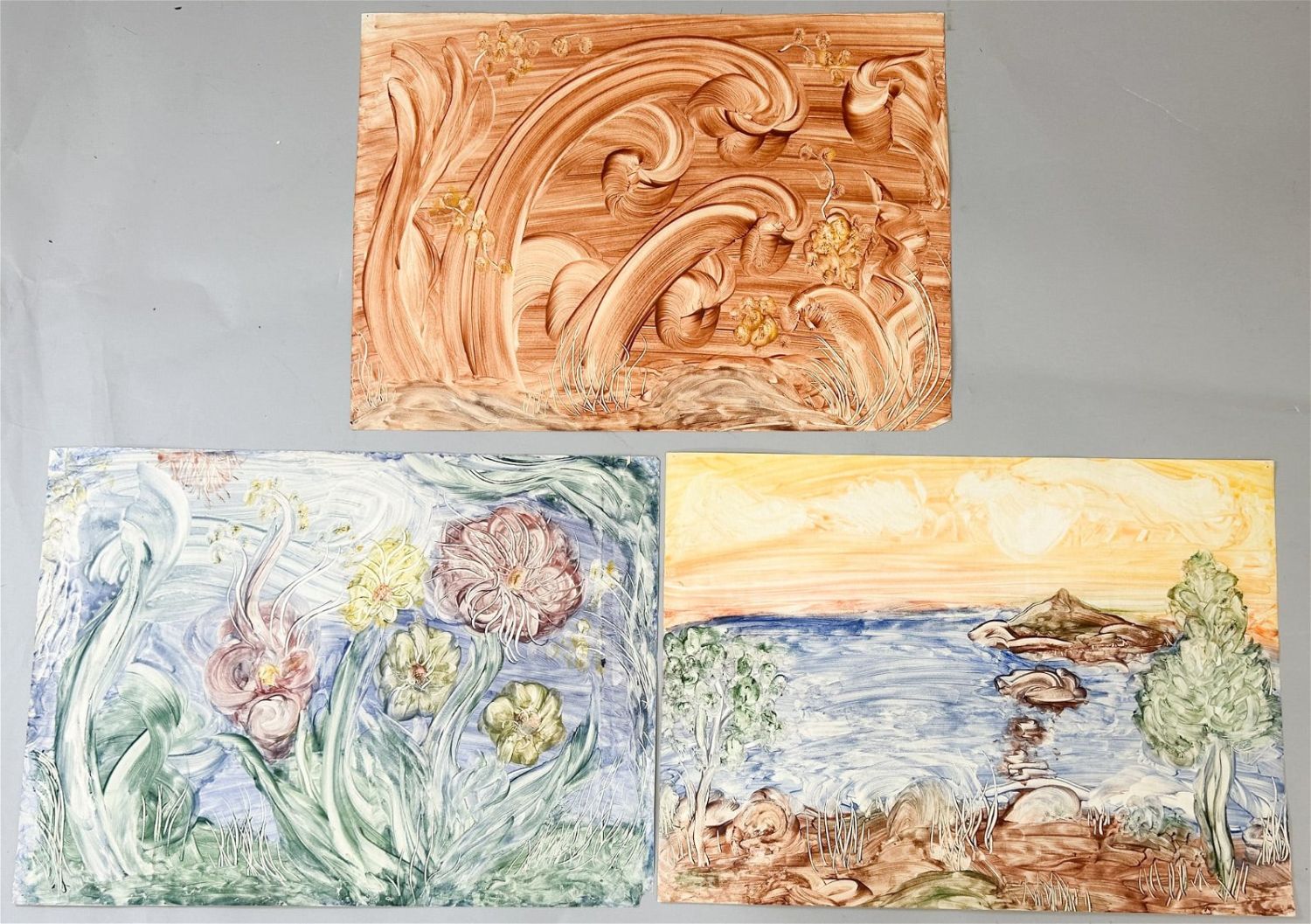 Group of (3) Abstract Painting by Gerry Gersch, 1945, sight size 16”h x 22”w Condition: Good