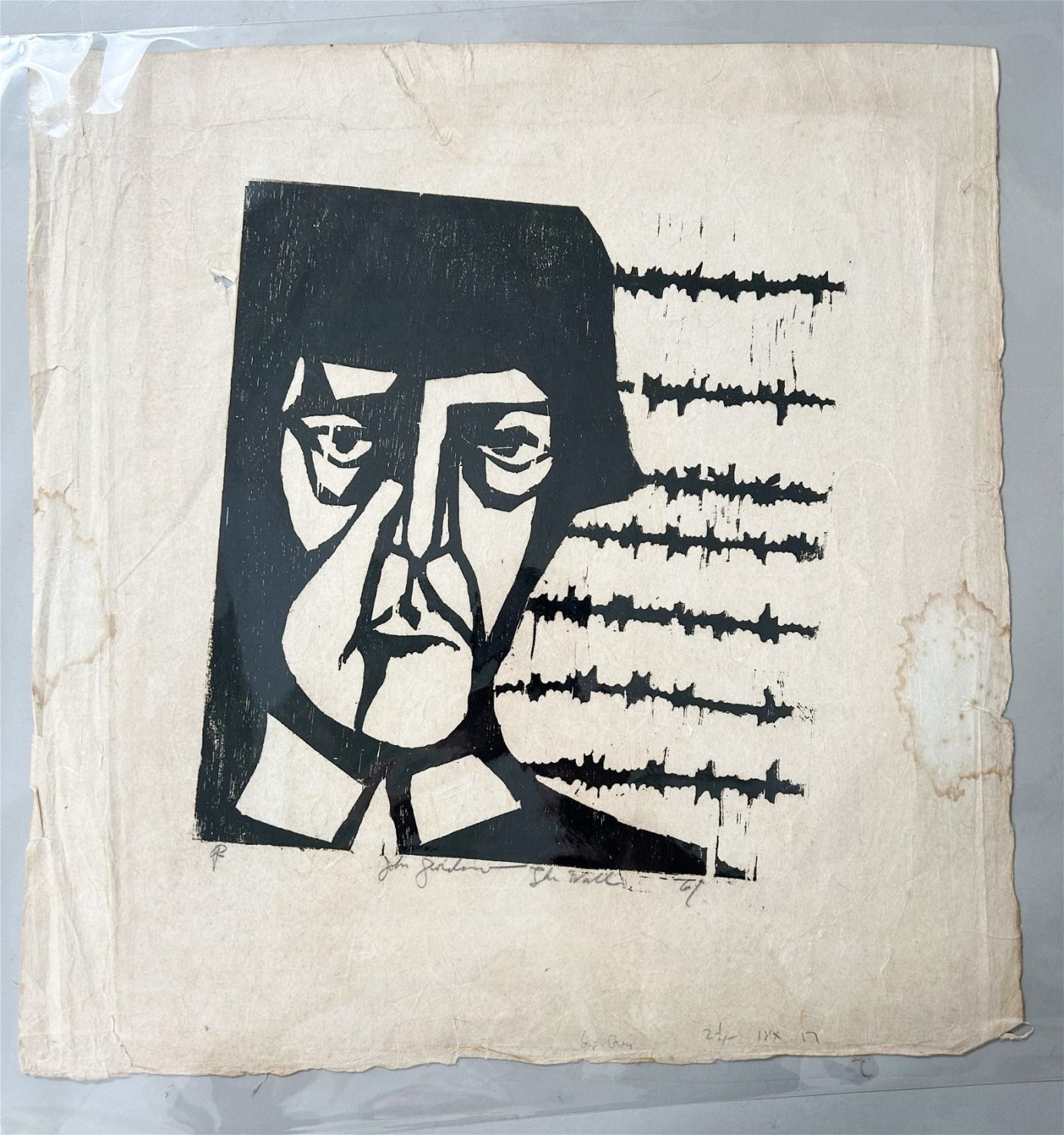 20th Century Abstract Lithography, Pencil Signed by John Shayn, 61 at Lower Right and Titled as ”The Wall”, sight size 18”h x 18”w Condition: Good, minor tears at edges