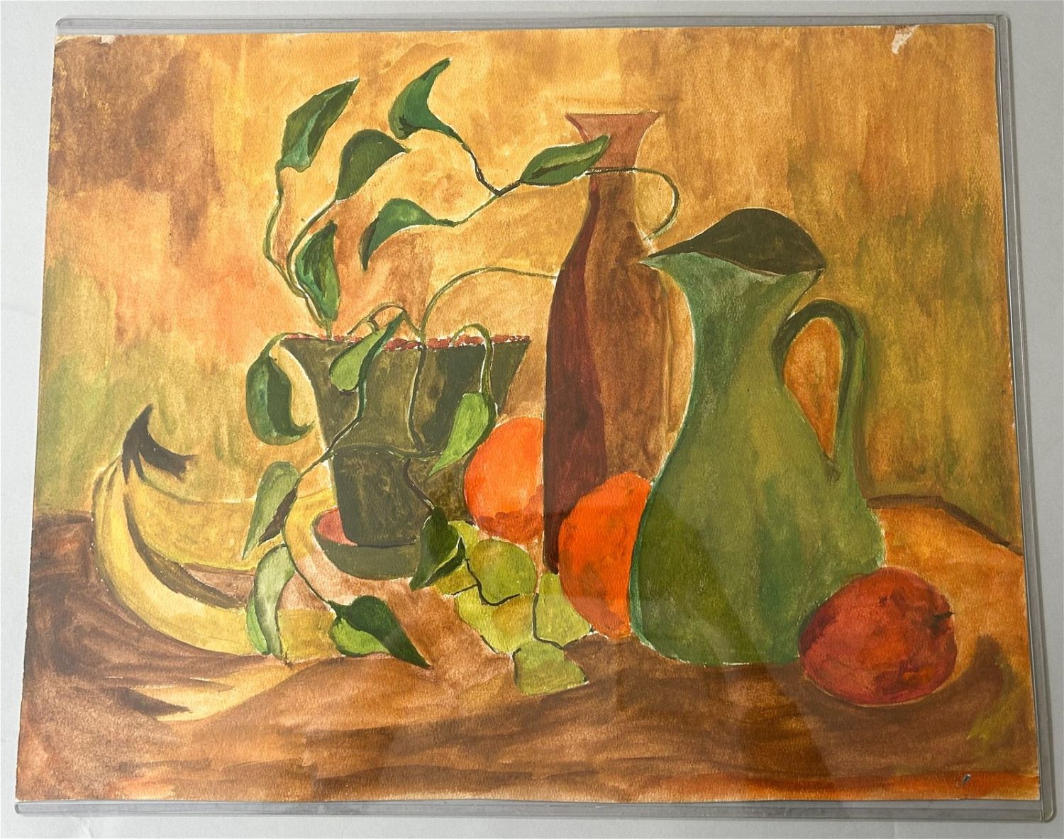 Watercolor on Paper Still Life Painting , Signed Verso by Karen Kahn, sight size 16”h x 20”w Condition: Good, minor tears at edges