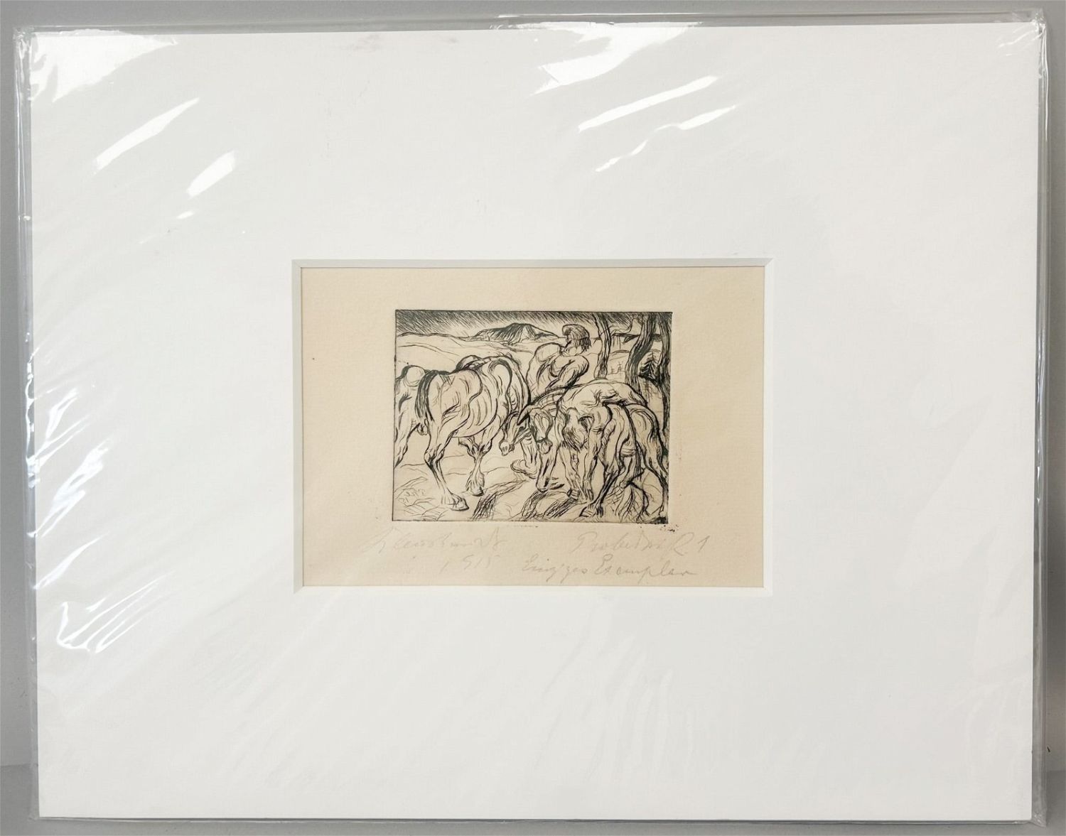 Abstract Etching by Paul Kleinschmidt, Artist`s Third Proof, board size 11”h x 14”w and sight size 4.5”h x 6.5”w Condition: Good