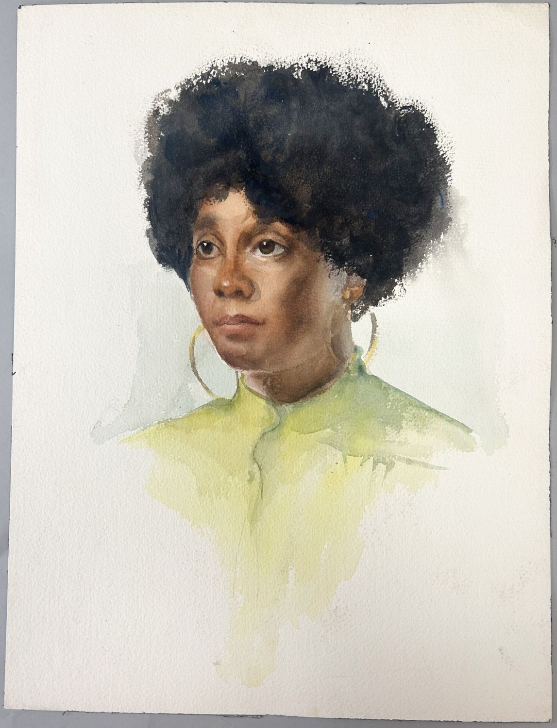 Watercolor on Paper Woman Portrait, Unsigned, sight size 16”h x 12”w Condition: Good