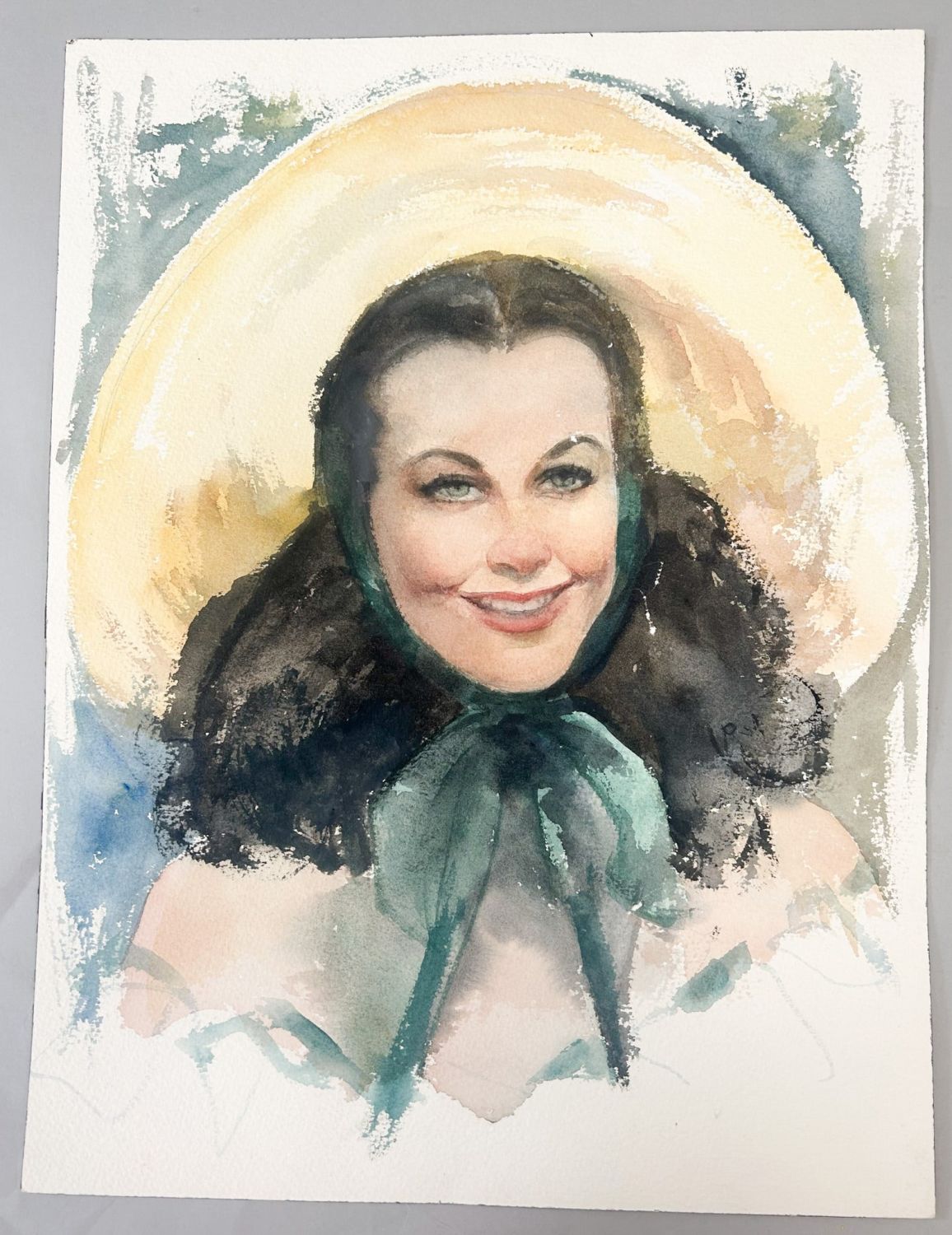 Watercolor on Paper Woman Portrait, Unsigned, sight size 16”h x 12”w Condition: Good