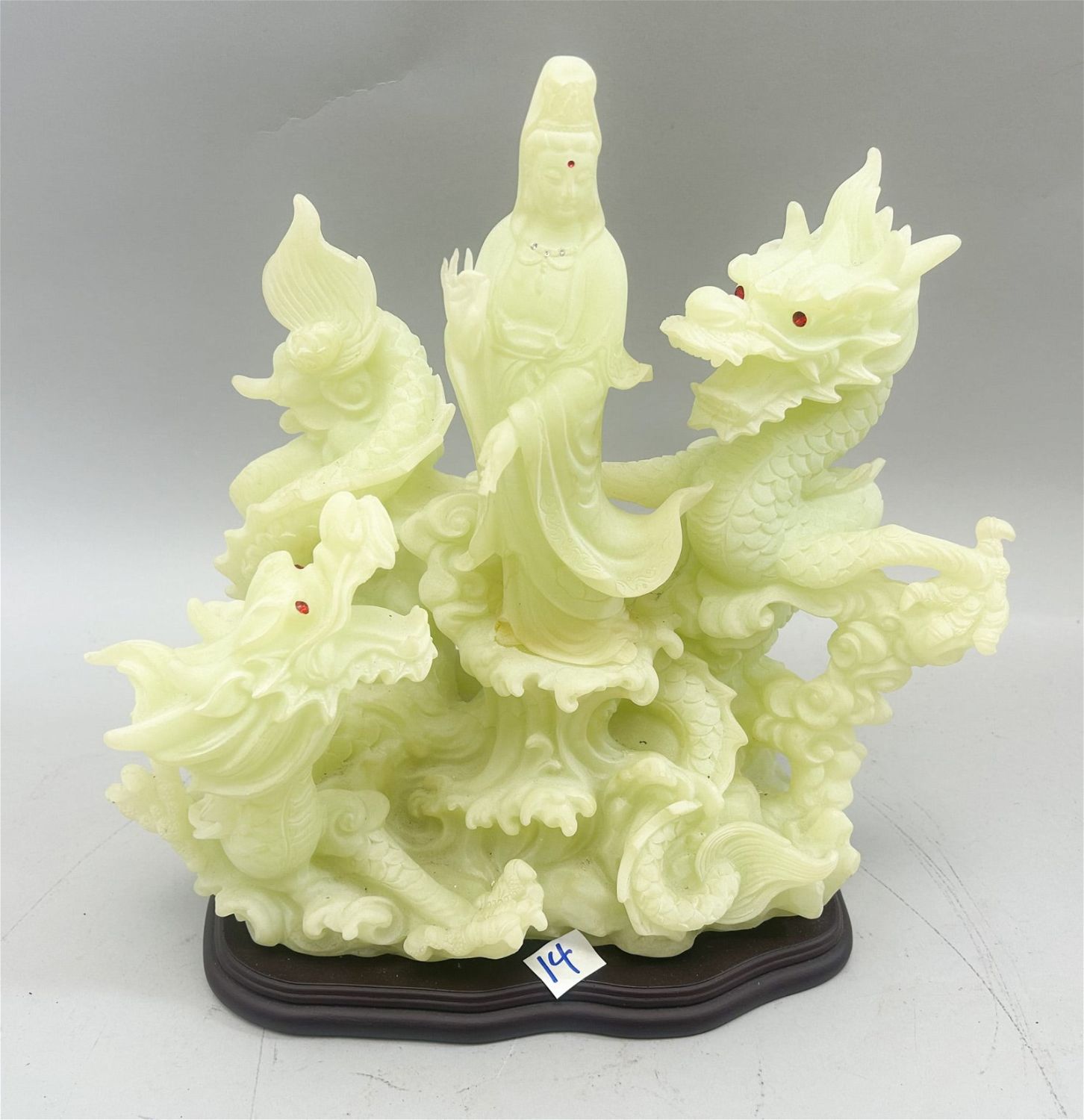 Vintage Chinese Statue, Signed Yihun, approximate size 16"H x 15"W x 8”D Condition: Good
