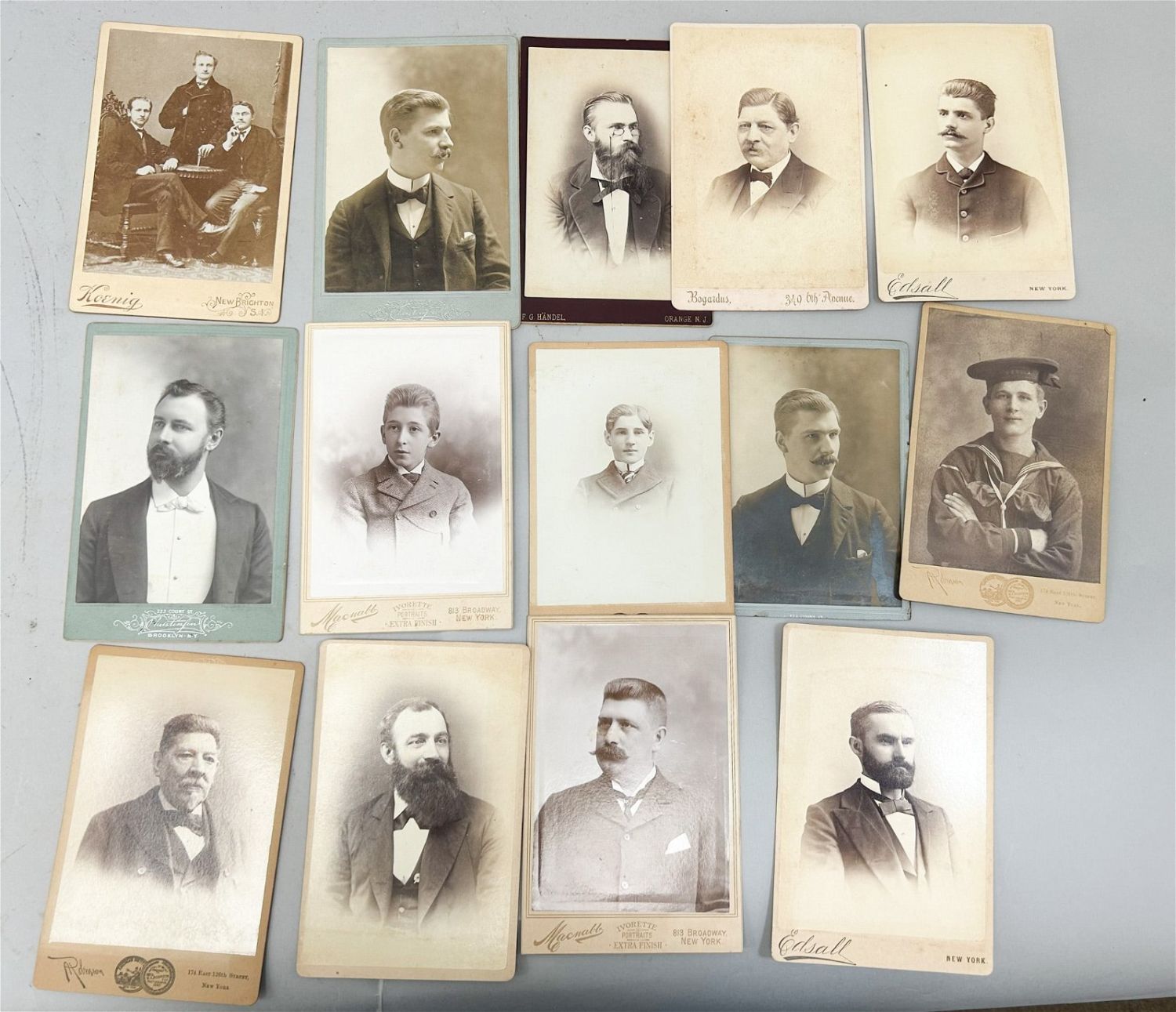Group of (14) Antique Photographs of Gentlemen from New York Area, approximate size 6.5"H x 4.25"W Condition: Good, sign of age
