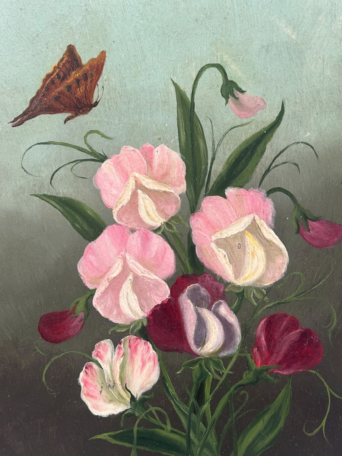 Vintage Still Life Flowers, Oil on Board, Unsigned, frame size 13.5"H x 8.25"W and sight size 3.25"H x 3.25"W Condition: Good