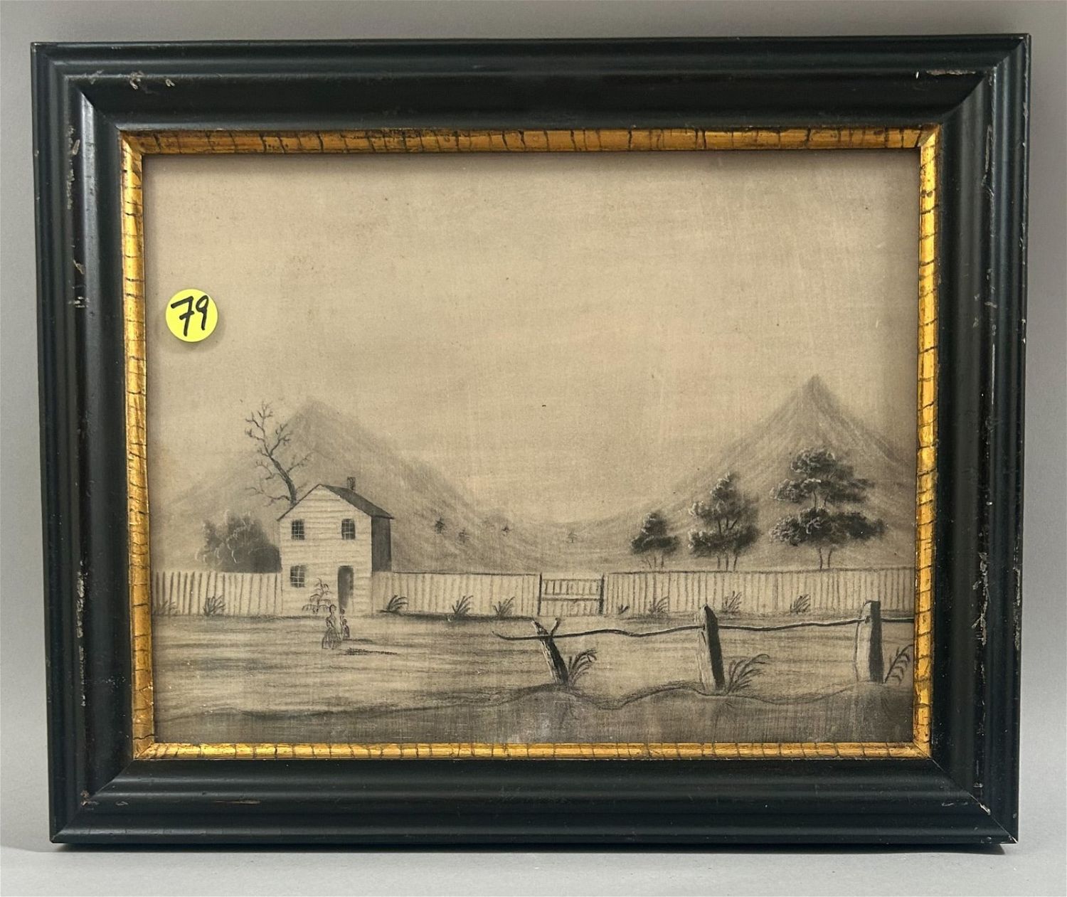Pencil Landscape Drawing , Unsigned, frame size 11.25"H x 14"W and sight size 8.25"H x 11"W Condition: Good, some scratches on frame