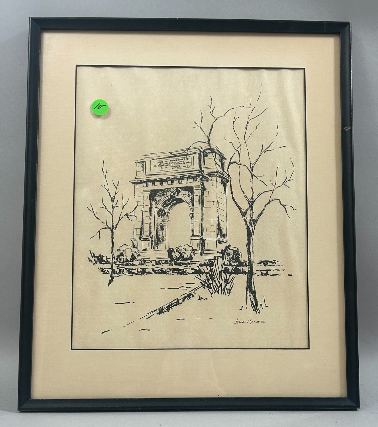 Vintage Ink Painting on Paper, Signed by Jean Mansur Lower Right, frame size 17.75"H x 14.75"W and sight size 12.75"H x 10.25"W