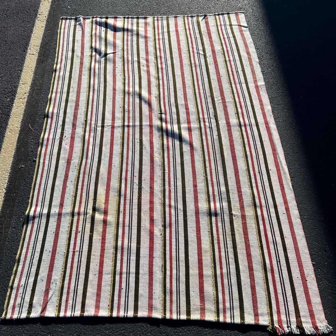 Vintage Handmade Turkish Area Rug, approximate size 100"l x 70”w Condition: Good, some stains, sign of use and age