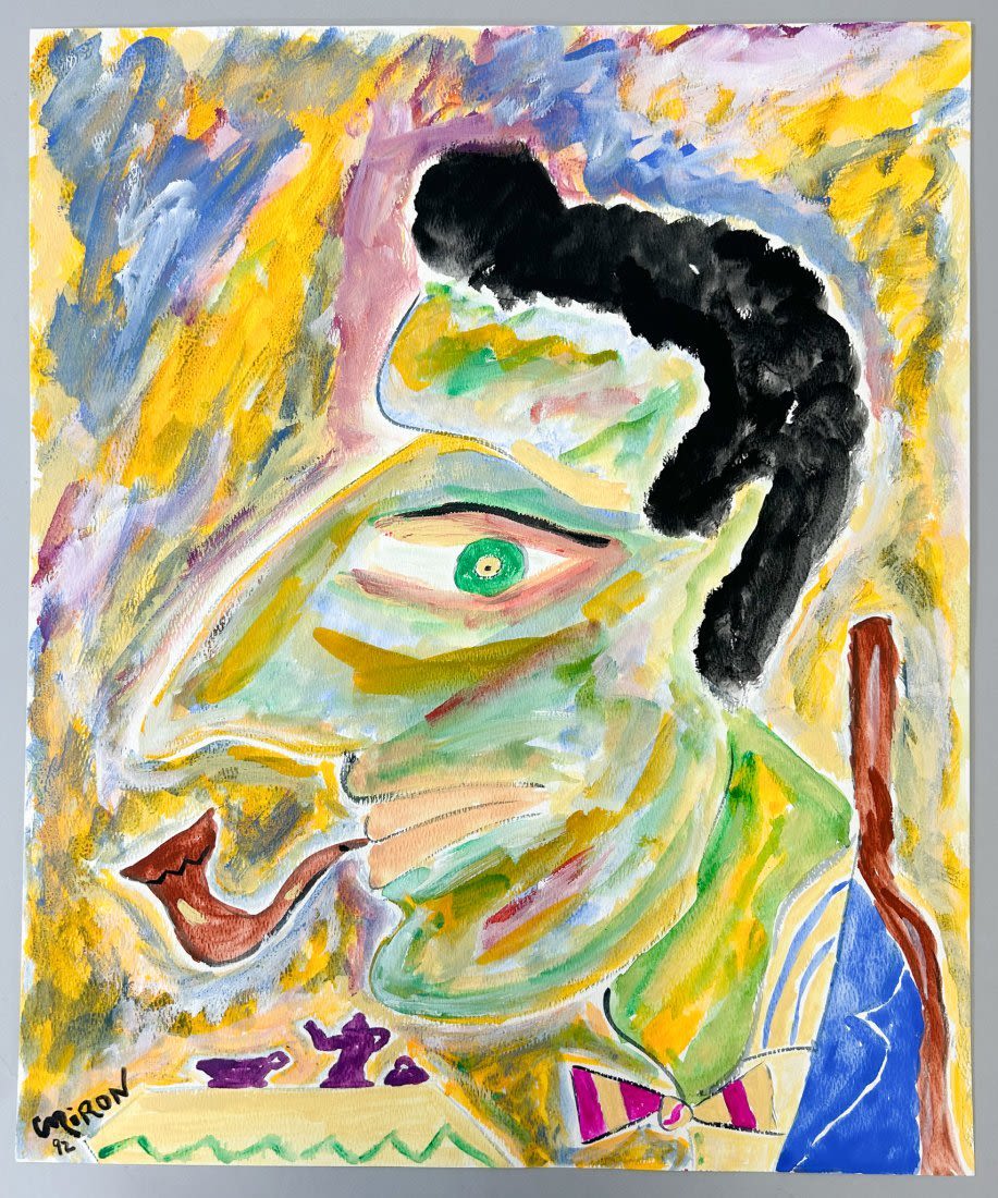 Watercolor on Paper Woman Portrait, Signed by Miron, 92 at Lower Left, sight size 18”h x 15”w Condition: Good