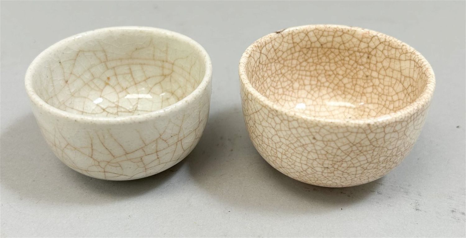 Pair of Vintage Asian Porcelain Tea Cups, 1.25"h x 2"d Condition: Good, some imperfections, signs of wear and age