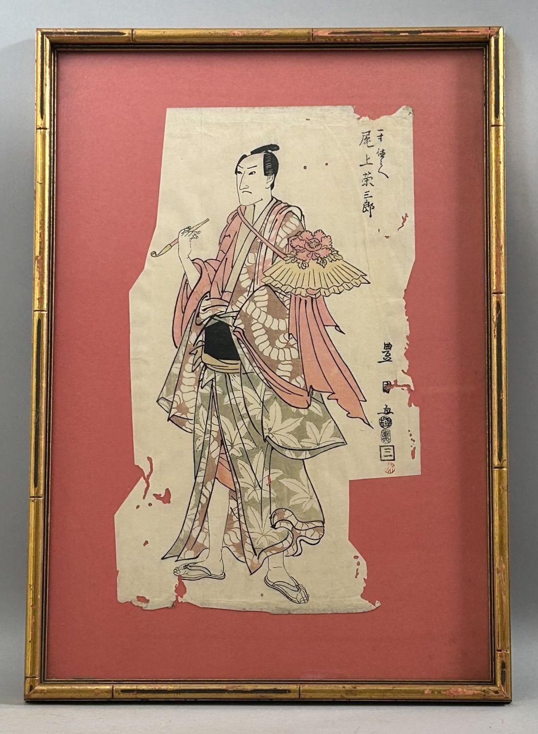 Antique or Vintage Asian Man Portrait, frame size 20"H x 14"W and sight size 15"H x 9"W Condition: Fair
