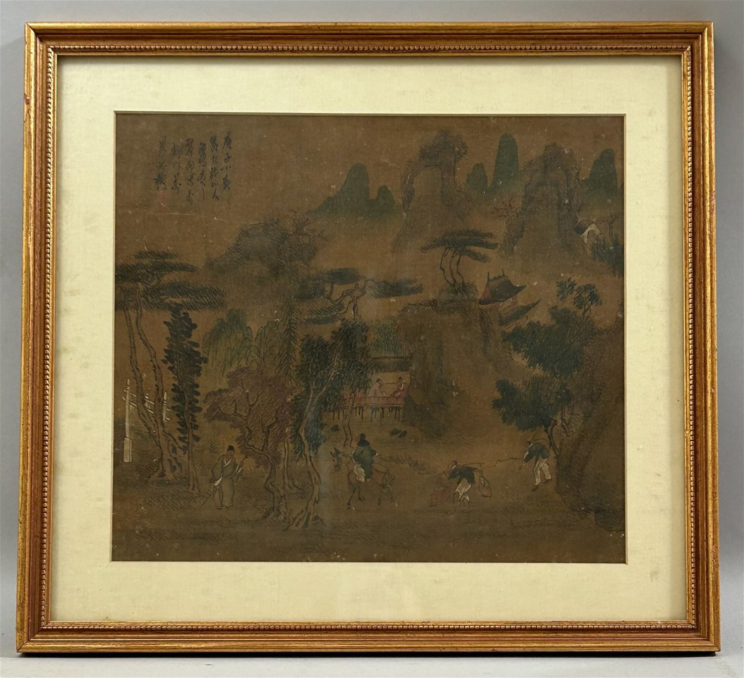 Framed Vintage Asian Landscape Painting, frame size 15.5"H x 17"W and sight size 11"H x 12.5"W Condition: Good