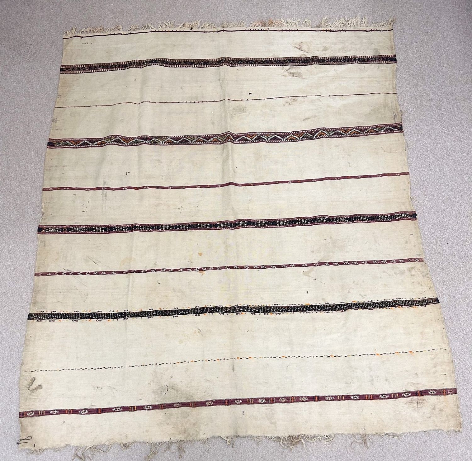 Zemmour textile, embroidery in red, black, orange and yellow, tribally well-used, first half of the 20th century or earlier, Morocco, North Africa, 60" x 70"