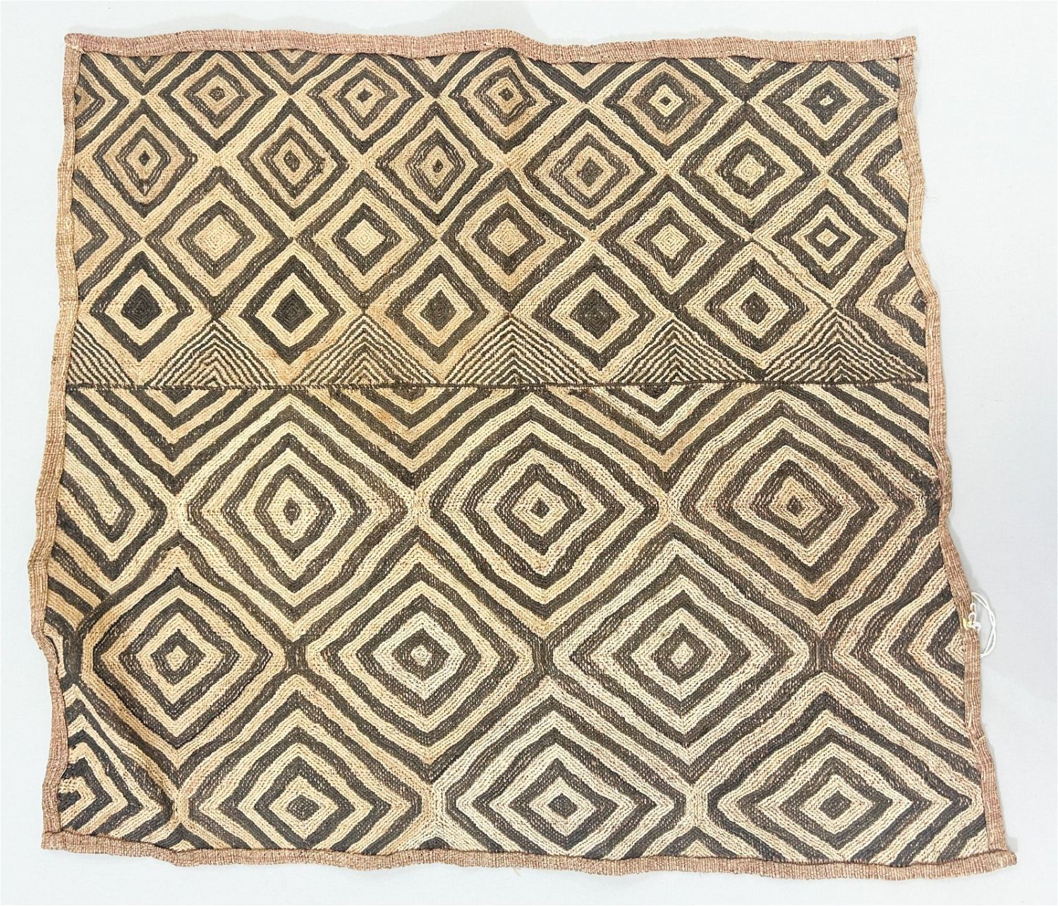 Kuba peoples, cut-pile embroidered raffia textile, likely first half or mid-20th century, Democratic Republic of the Congo, Central Africa, 18" x 17"