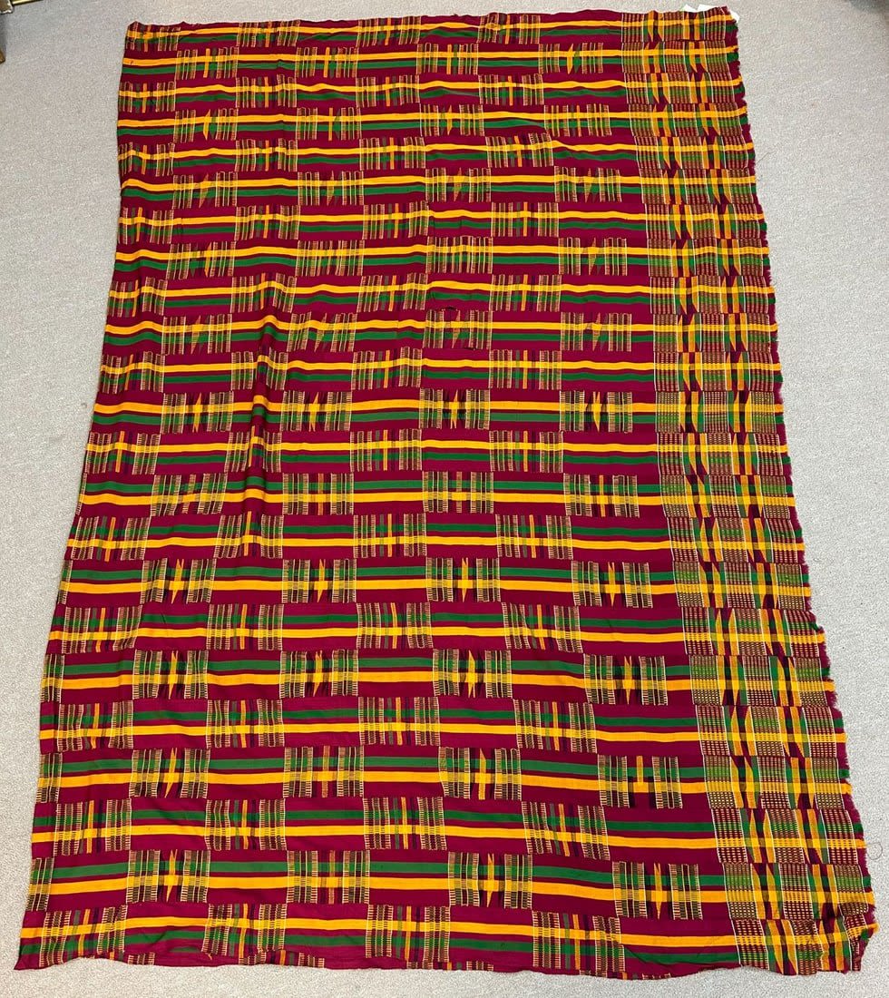 Strip woven Kente cloth, Ashanti peoples, Ghana, West Africa, 124" x 89"
