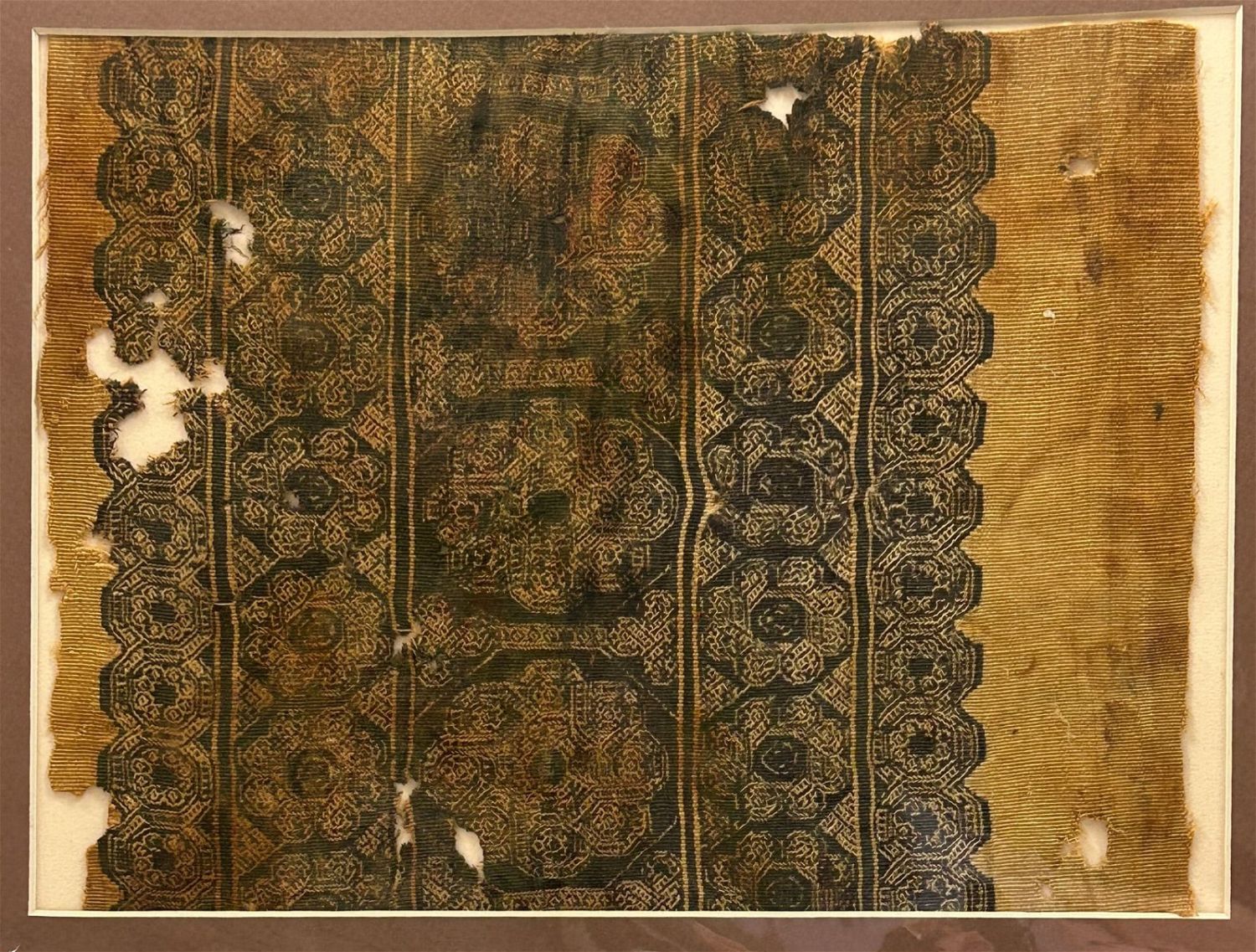 Condition: Fair: Very old textile fragment, losses, fragile, condition consistent with age.