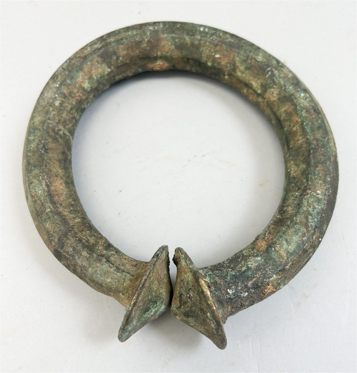 Copper alloy torque currency, Yoruba peoples, Nigeria, West Africa. Approximate size, 7.5" diameter.