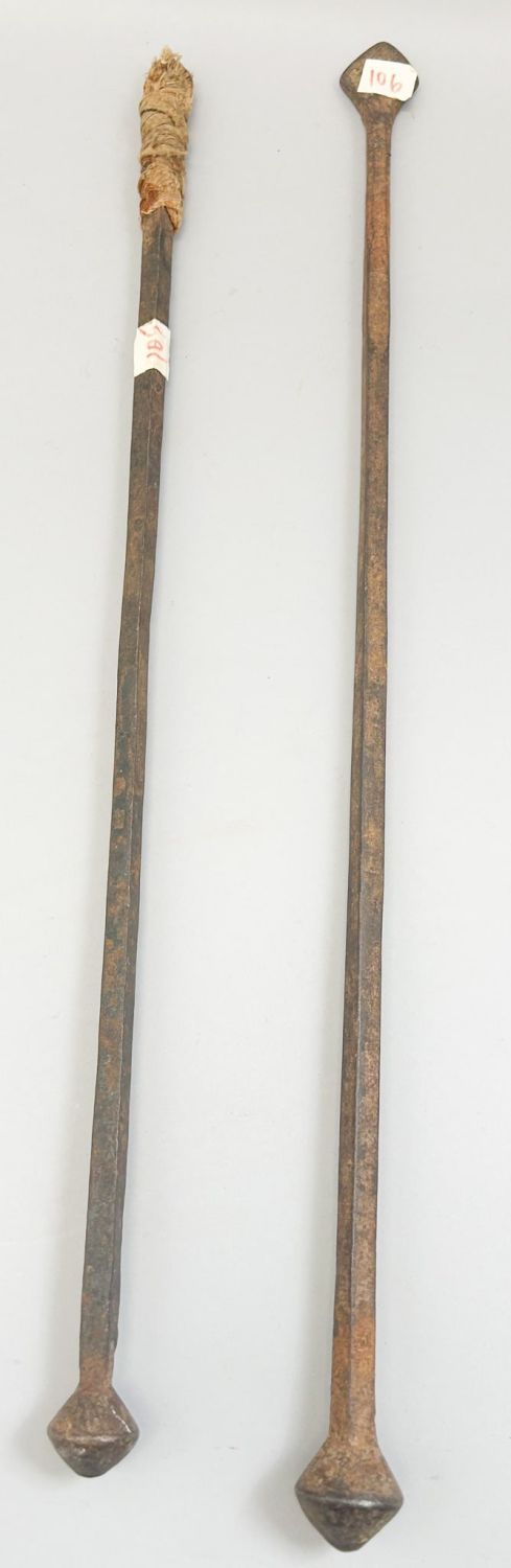 Two forged iron prestige staff, Nigeria, West Africa. Approximate size, 26.75" length (larger).
