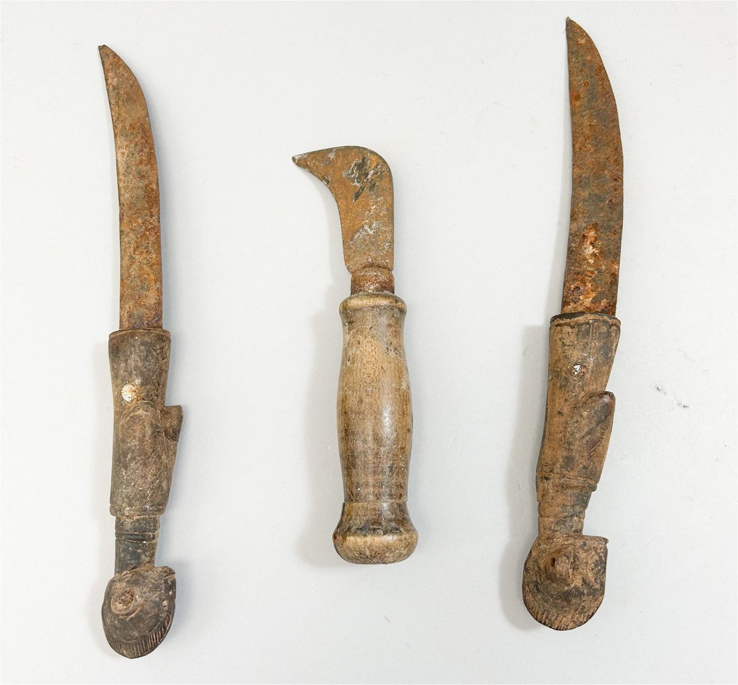 Iron Blade Knives With Carved Wood Handles (3)