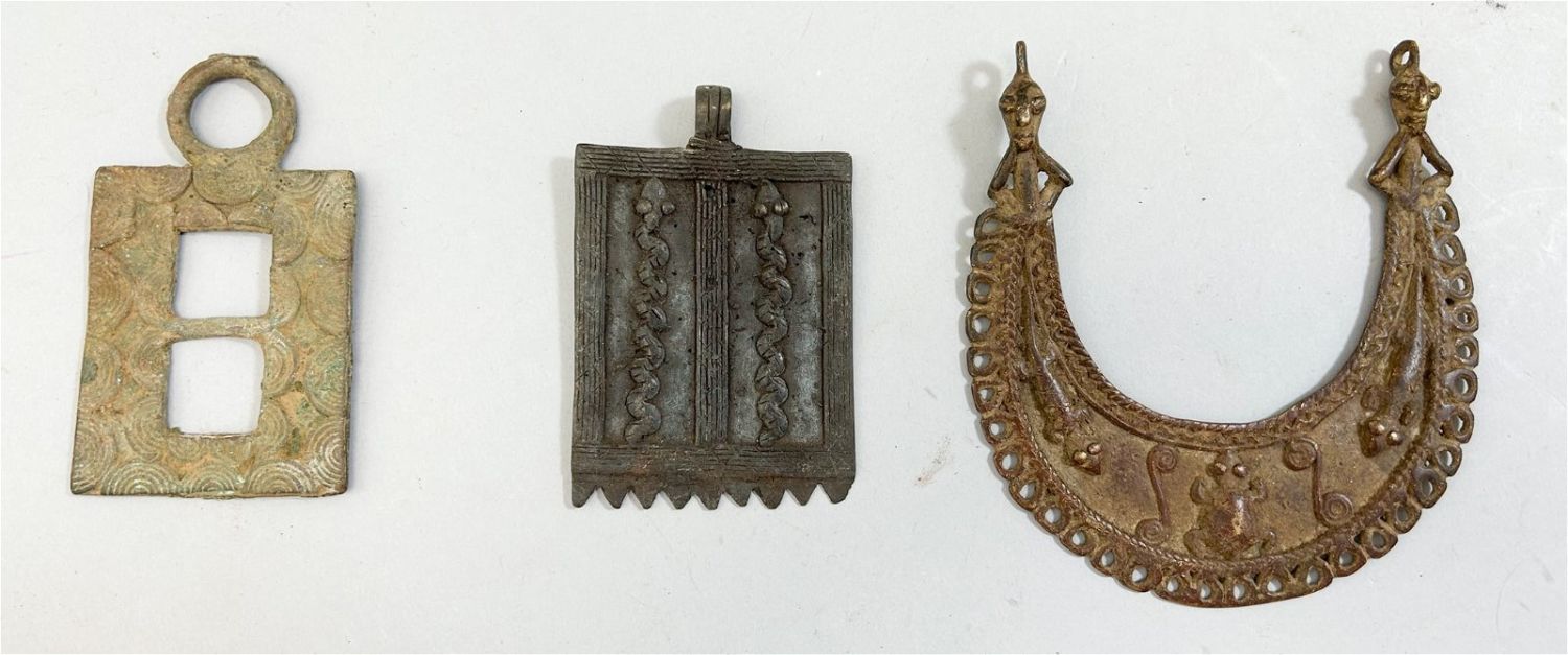 Three (3) pendants, various cultures, Burkina Faso, West Africa. Approximate size, 5" x 4.5" (largest).