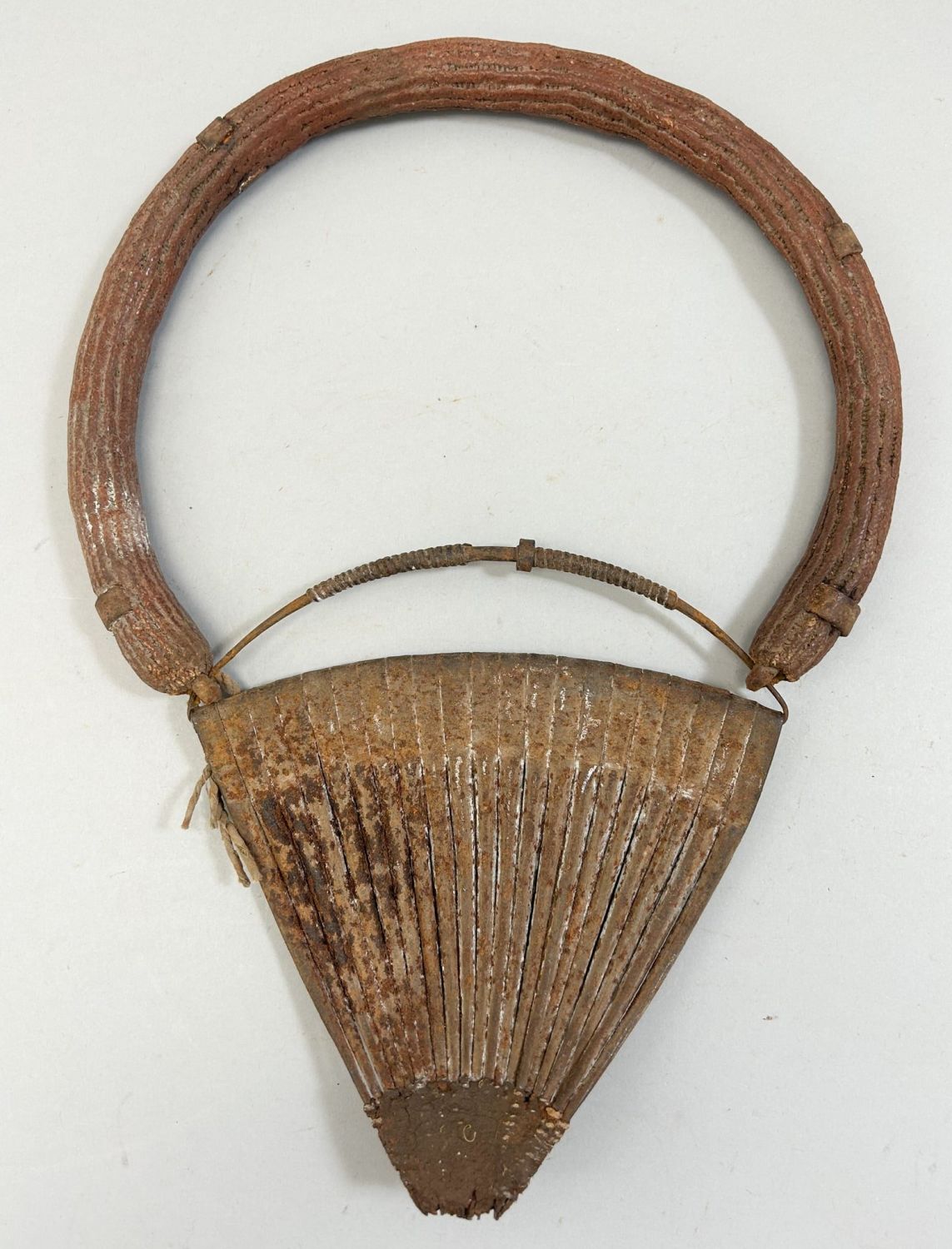Iron cache sexe, with woven organic waist band, Kirdi peoples, Cameroon, West Africa. Approximate size, 13" x 8.25".
