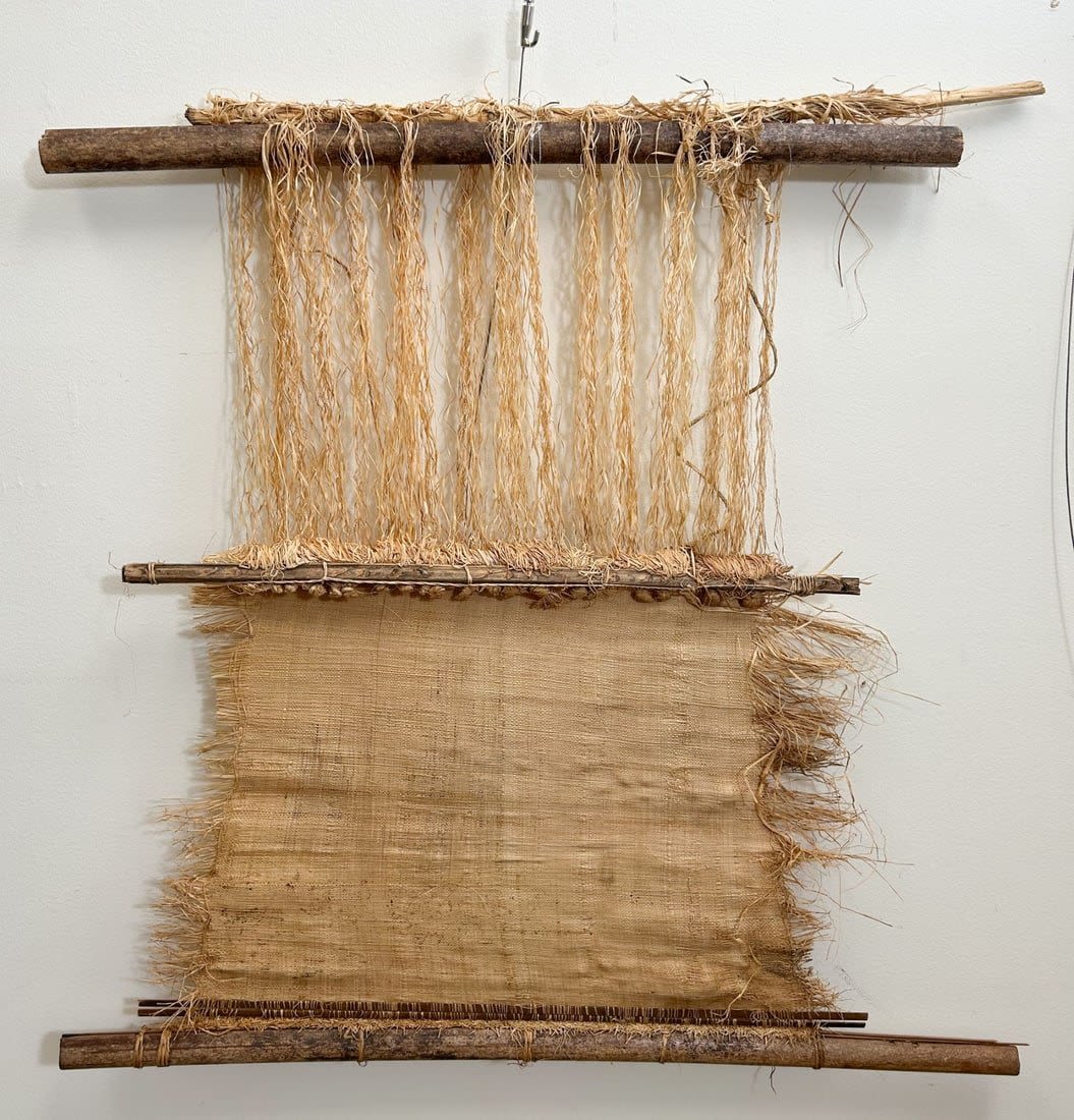 Kuba peoples raffia loom, mid-20th century, Democratic Republic of the Congo, Central Africa, 35" x 39" Condition: Fair; wear, losses, abrasions
