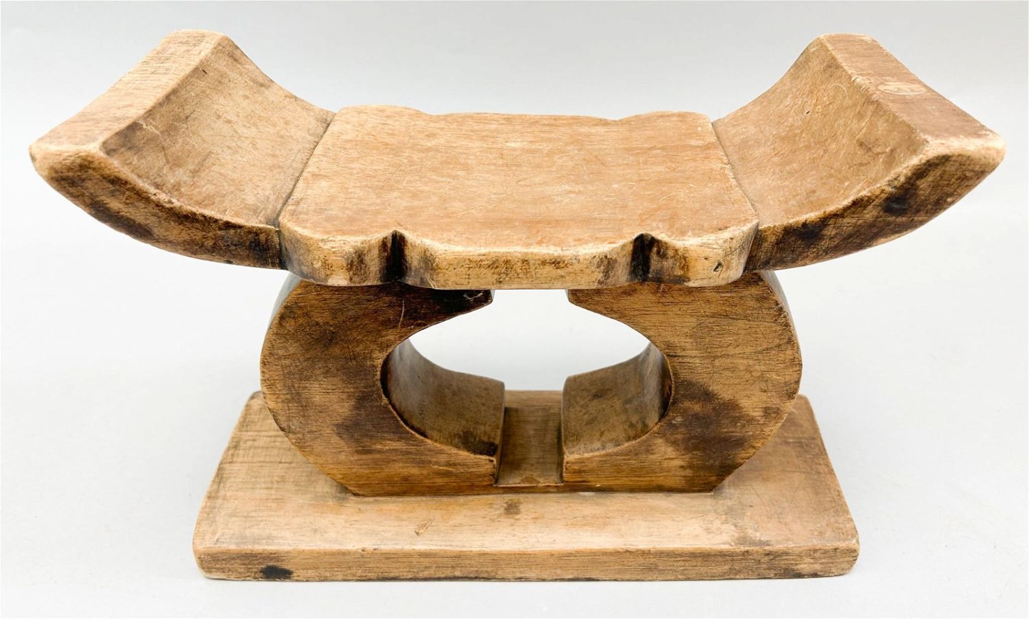 Akan style carved wood stool, Republic of Ghana, West Africa, 13.5" x 9" x 6" Condition: Fair; scratches, dents, wear consistent with age