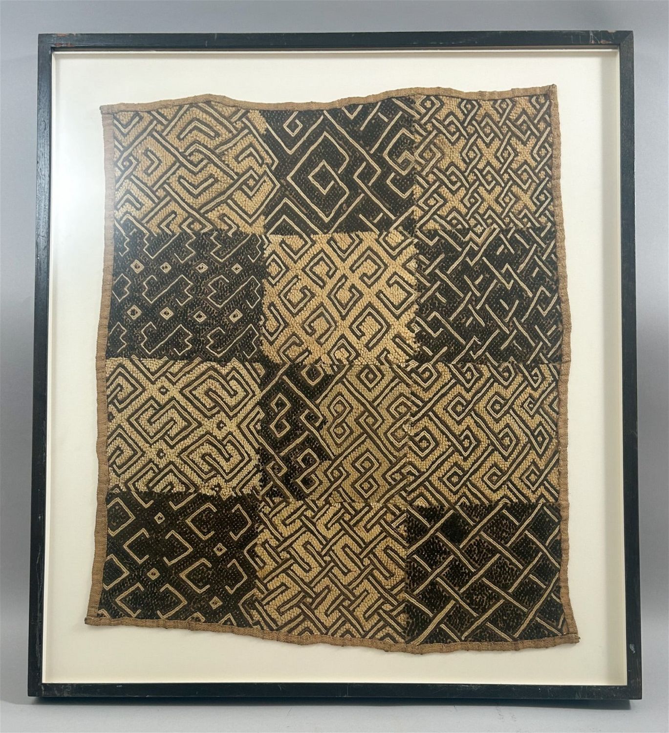 Framed Kuba peoples raffia textile, mid-20th century, Democratic Republic of the Congo, Central Africa, frame size 29.75" x 26.75" and textile size 25" x 21"