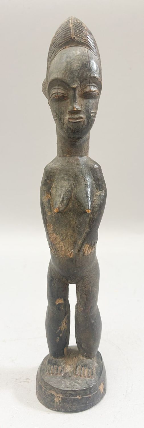 Baule Tribe Carved Wood Female Figure, Ivory Coast, 12" x 2.5" x 2.5"
