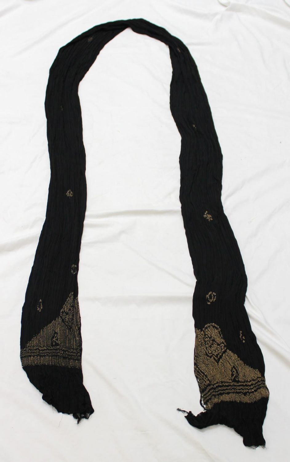 Woven textile scarf, unknown culture, possibly West or North Africa, likely mid-20th century. Approximate size, 125" x 8".