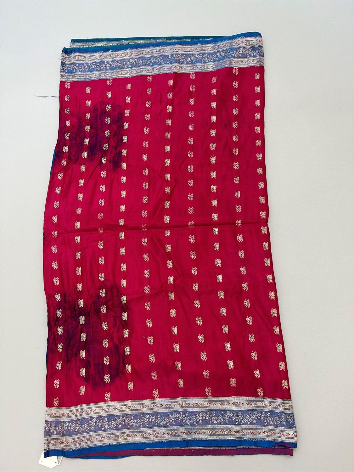 India, Silk Sari with Metal Silver Tone Pattern, 190"l X 44"w