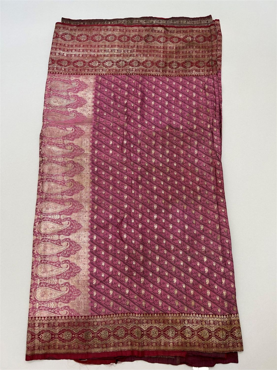 India, Silk Sari with Metal Gold Tone Pattern, 190"l X 44"w