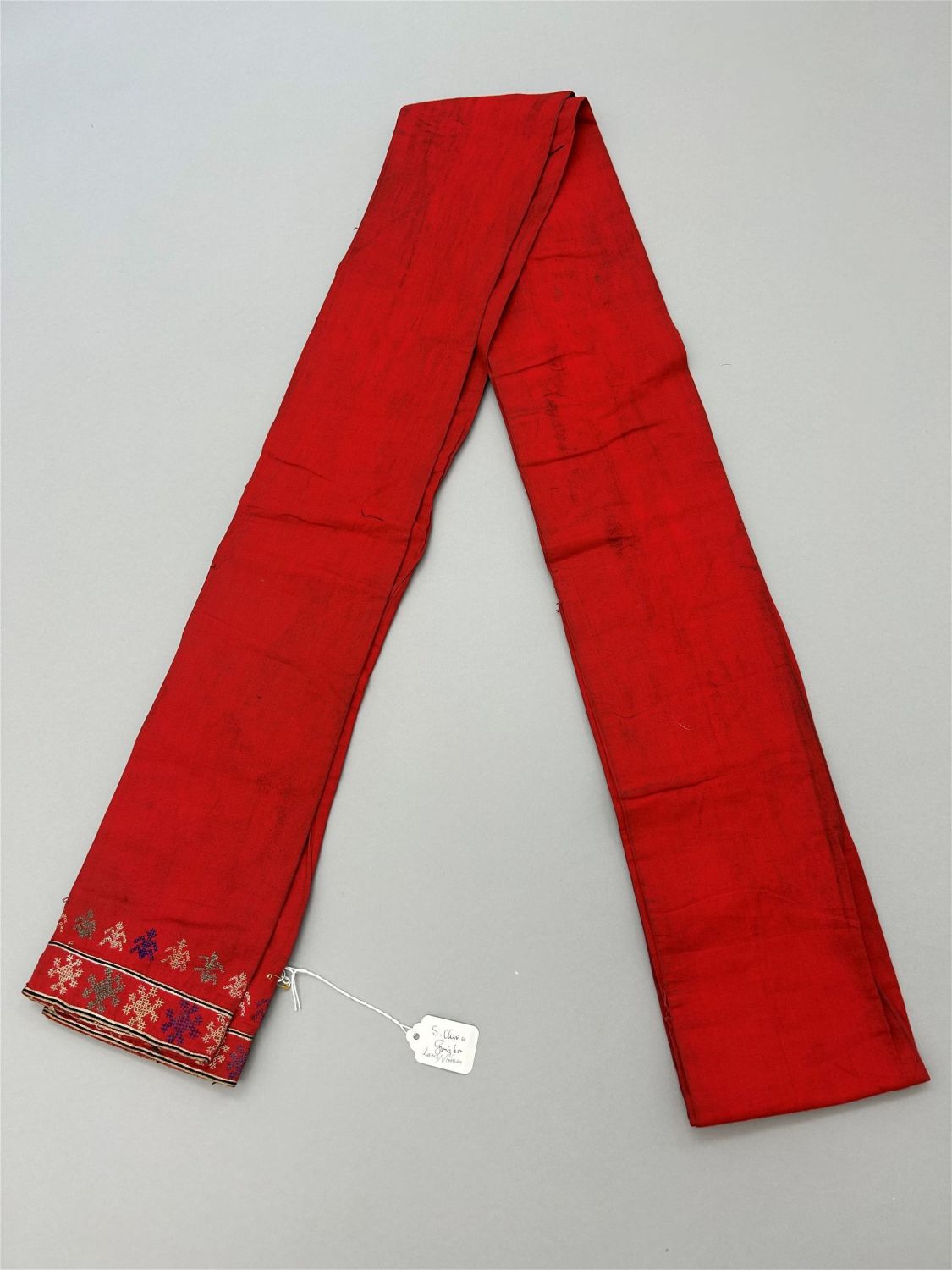 South China , Embroidery Cotton Textile, Sash, 124"l X 6"w