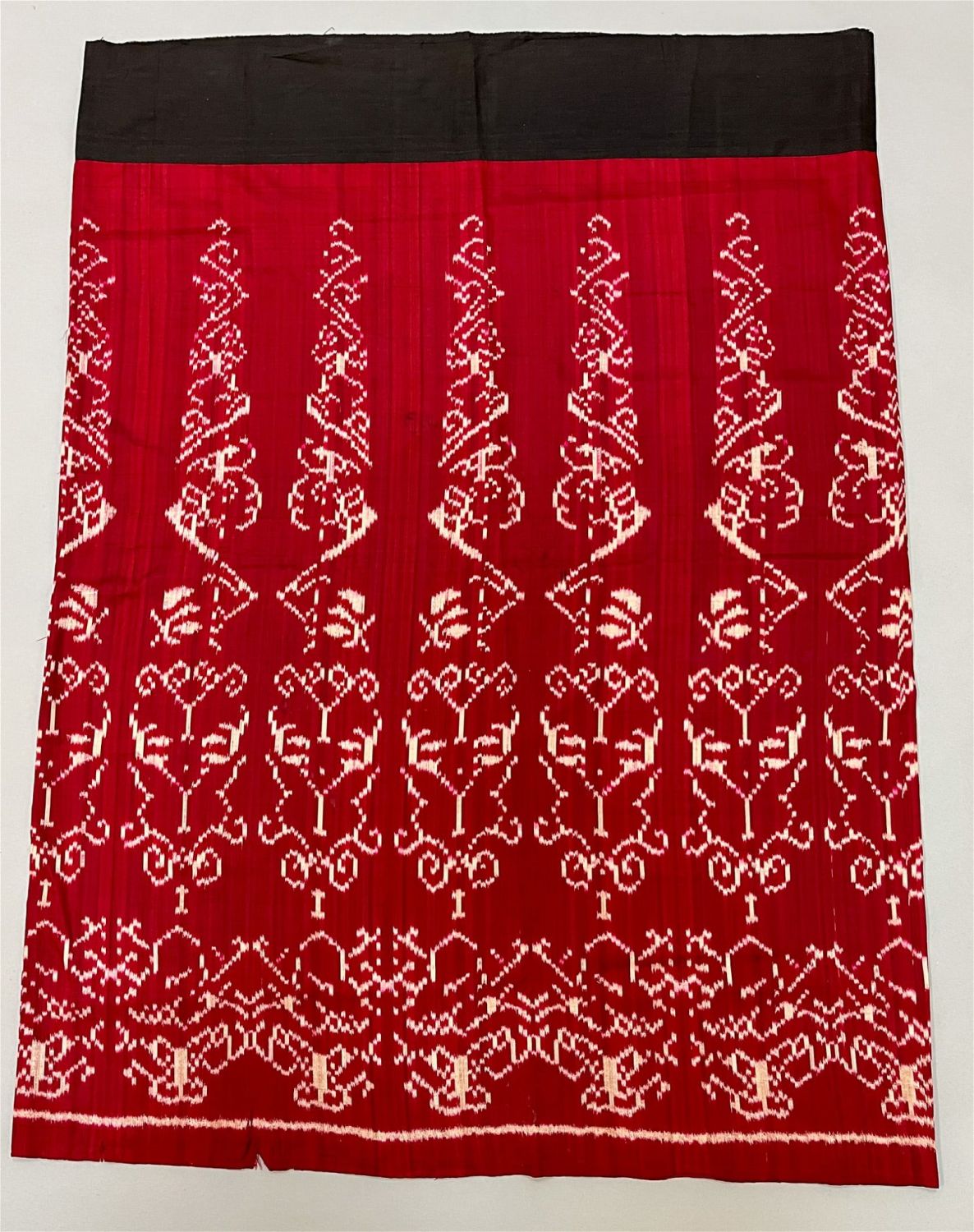 Myanmar (Burma), vintage silk ikat pattern tubular sarong, red ground with white traditional pattern, 43"l x 32"w