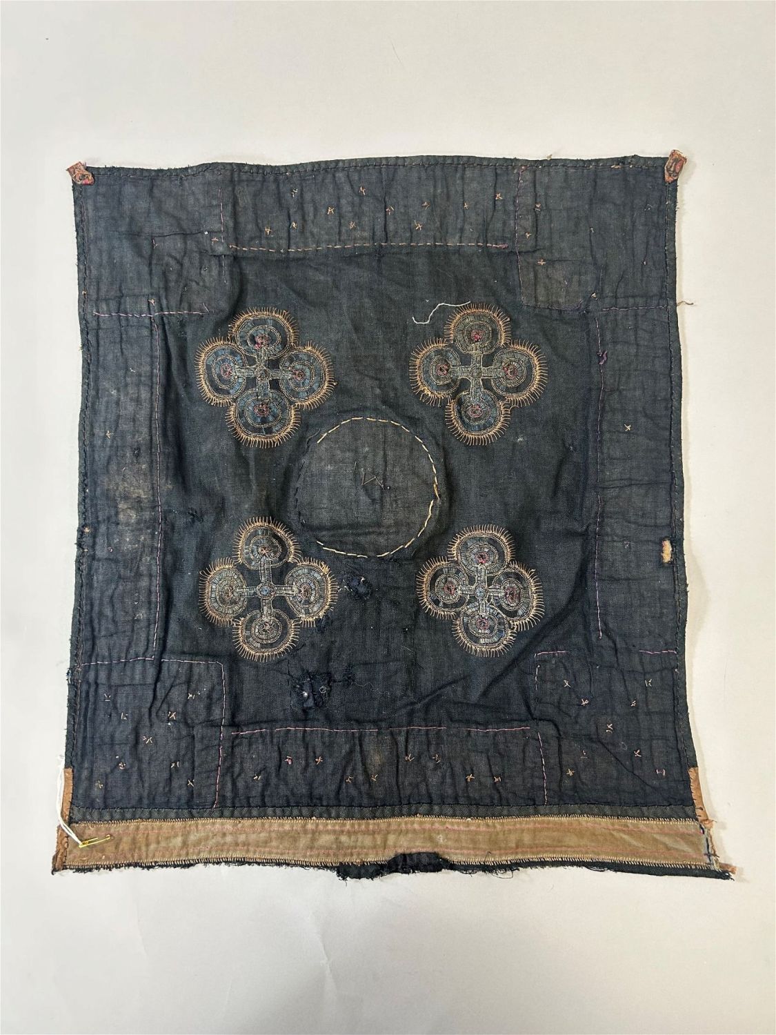 Condition: Fair, signs of repair, fraying on the edges, small holes, signs of use and age