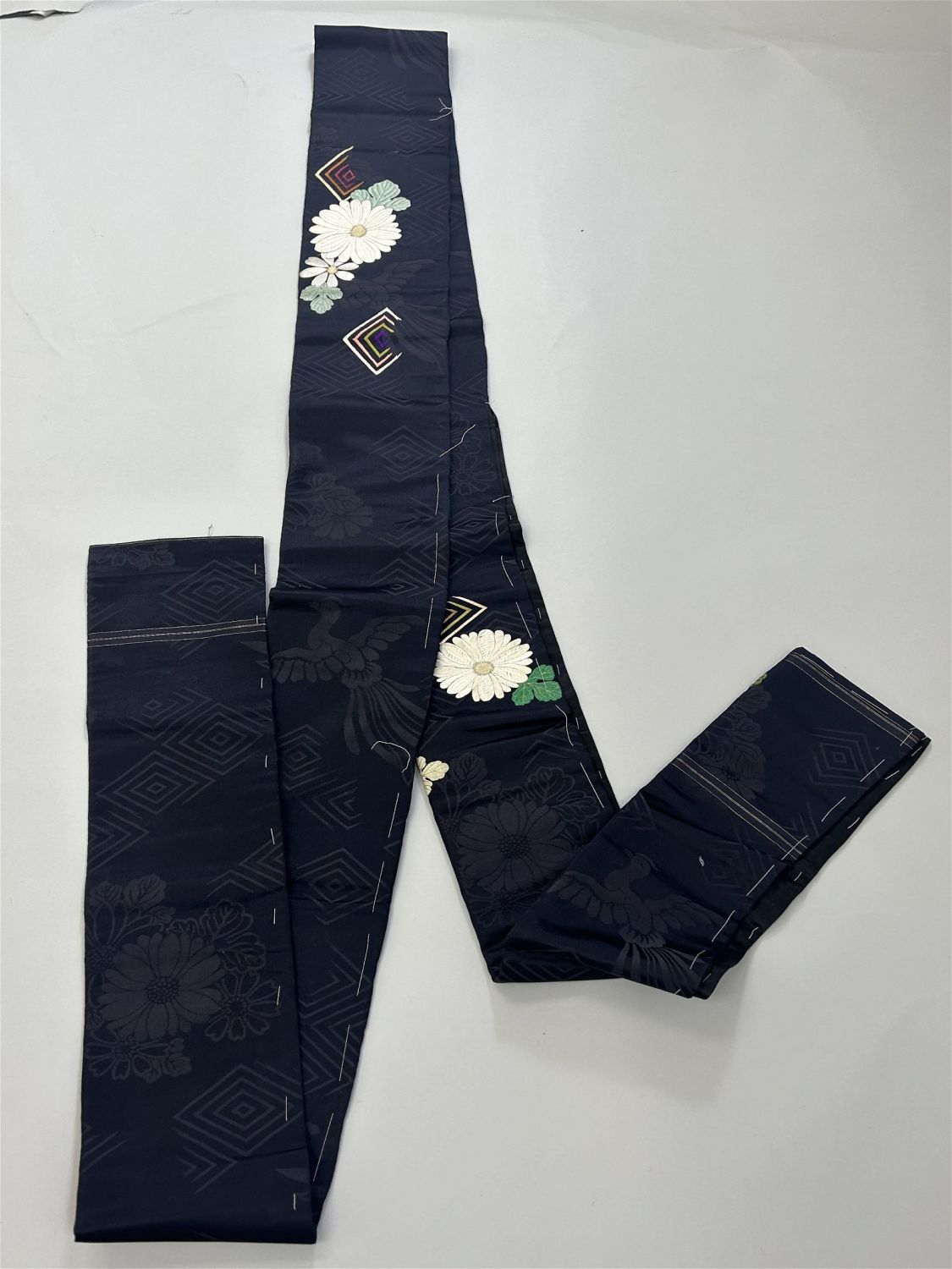 Vintage Japanese Silk Obi Embroidery and Handpainted, 160"l x 11.5"w