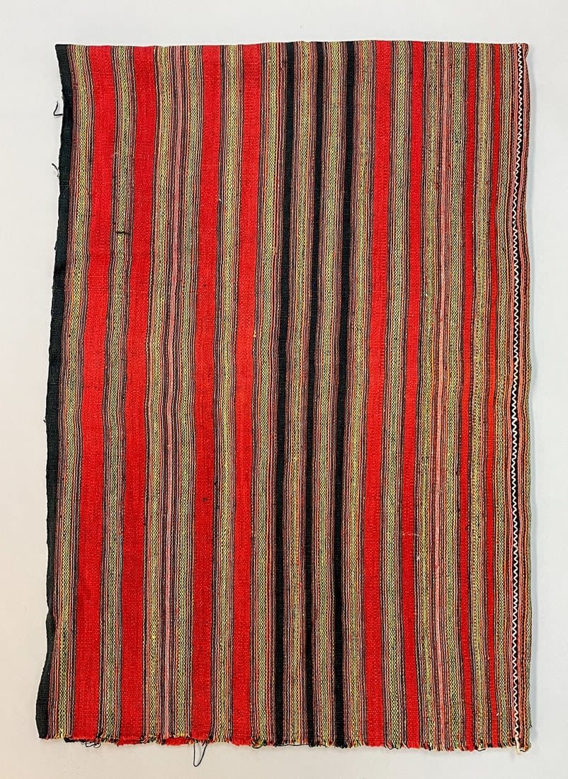 Karen (also known as the Kayin, Kariang, Kawthoolese), Myanmar (Burma), vintage woven cotton woman’s skirt, red, green, black color stripes pattern, consists of two panels sewn together, 56"l X 37"w