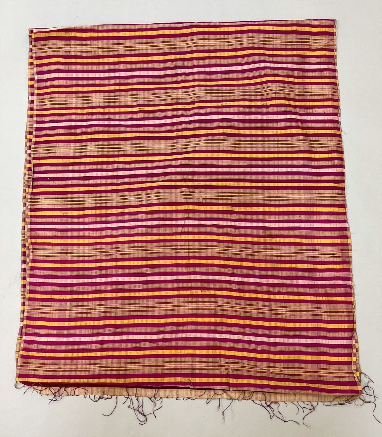 Lombok, Indonesia, vintage silk textile, magenta, gold, white and mauve stripes pattern, 127"l x 27"w