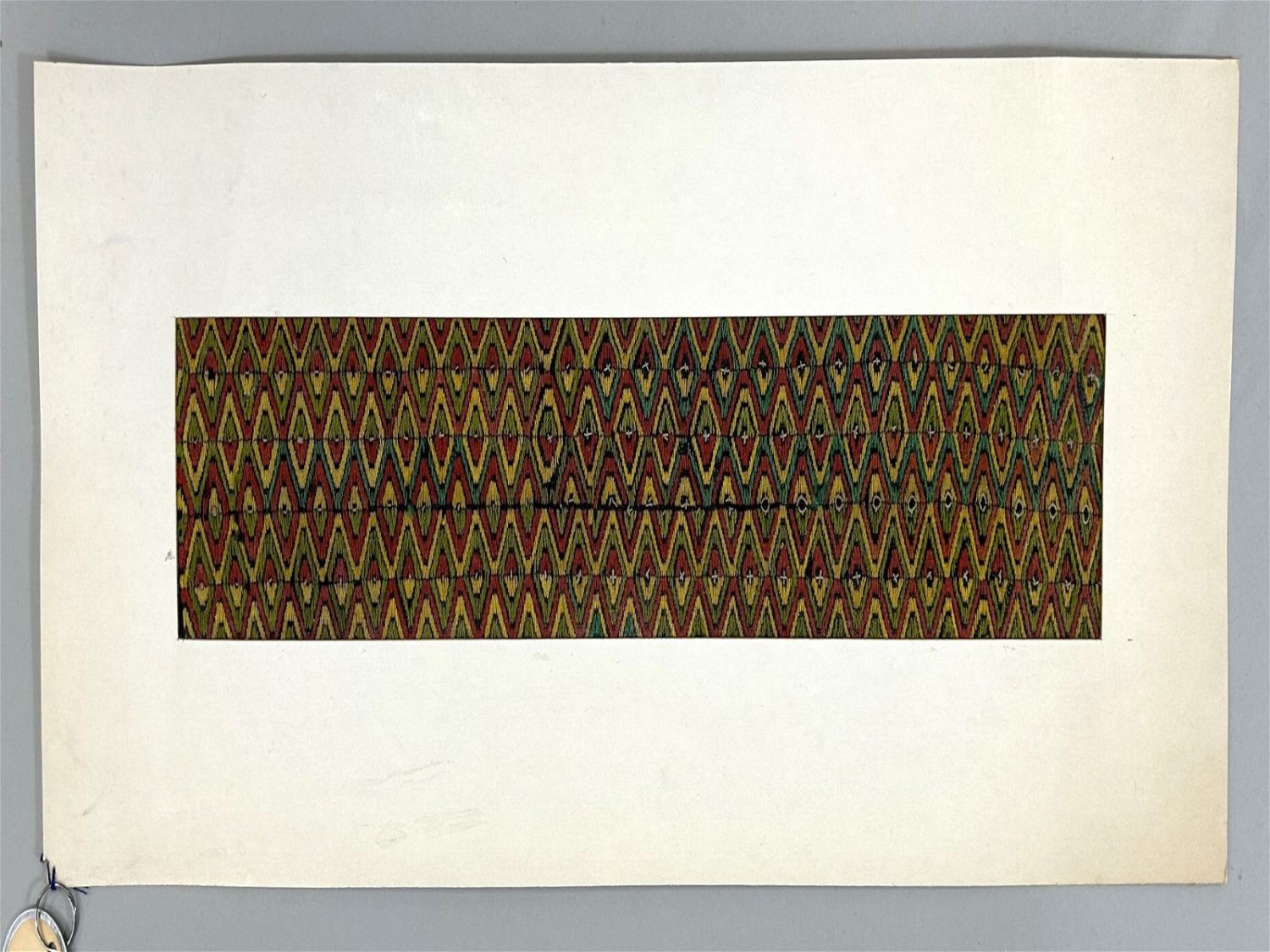 Taiwan Aboriginal Embroidered Textile Fragment, possibly matted for exhibition, approximately 17"l x 3.5"w