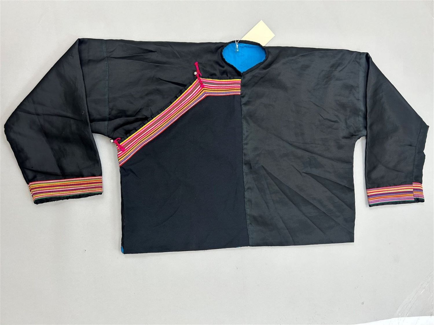 Possibly China, silk jacket with cotton lining, 20"l x 24"w, shoulder 24"w