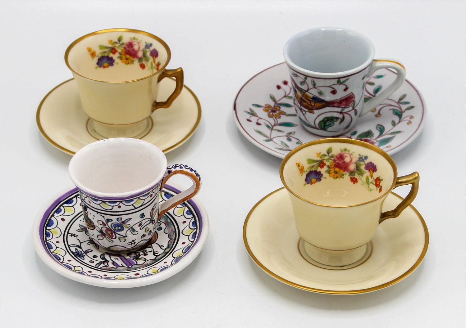 Vintage Group of (4) Assorted Sets of Tea/Demitasse Cups with Saucers